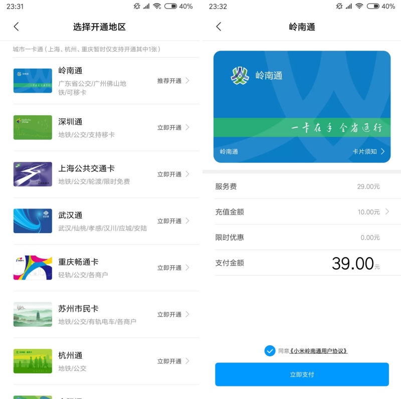 | 内容 | 刷手机坐地铁已经不是什么新鲜事了,ios系统和安卓系统使用方法还不一样呢,今天小编给大家带来最全的手机刷地铁,随便你是什么牌子的手机。 北京苹果用户 直接使用 Apple Pay 刷「手机」乘坐地铁和公交车,要求则是: iOS 11.3 正式版本的 iPhone,以及升级至 WatchOS 4.3 版本的 Apple Watch。 具体的操作方式是,打开钱包,在钱包中添加卡片。将交通卡添加到「钱包」中,充值后即可使用(需支付 20 的可退服务费,相当于实体卡的押金)。在使用过程中,这张卡片享受与实体交通卡相同的乘车优惠。 如果你已经有了实体卡,也可以在选择「从现有卡片转出余额」。输入卡片后四位,然后将实体公交卡贴近手机后方,这样就能将实体公交卡转入手机中。 ![]() ▲ 实体公交卡转移到手机 使用时,将 iPhone 上半部分靠近有专用闸机读卡区,将手指放在 Touch ID 上验证指纹,听到「滴」声后闸门打开即可通过,不用联网也不用退出当前应用,非常方便。 ![]() Apple Watch 进闸前双击右侧 Home 键,将 Apple Watch 显示屏靠近专用闸机读卡区,听到「滴」声后闸门打开即可通过。 App 对于在北京生活和工作的人来说,要想在北京出行更加方便,手机里必不可少的是这两个 app——《北京一卡通》和《易通行》。 《北京一卡通》#iOS #Android 下载后,需要使用手机号进行简单的注册和实名认证。进入北京一卡通后,用户会发现,这个 app 支持两种卡——手机一卡通和电子卡。 先来说说「手机一卡通」,开通方式很简单,只要往里充钱就能激活这张「卡」,支付方式包括 Apple Pay、支付宝、微信,用户也可以先在一卡通账户内充值,再用账户的余额来开卡。 ![]() ▲ 一个 app,两种卡片 值得注意的是,和实体公交卡一样,「手机一卡通」也需要缴纳 20 元的押金(可退)。 使用上,它也是最接近实体公交卡体验的,通过地铁闸机或是公交刷卡器时,手机贴上去即可。 下面我们来介绍下电子卡。电子卡不需要开卡,直接使用二维码扫码乘车。这也是电子卡和手机一卡通不同的地方,手机一卡通采用的支付方案是 NFC。 二维码乘车的扣款方式有三种,前两种适用于个人用户,直接通过账户的余额扣款,或是绑定微信,每次乘车直接在微信钱包内扣款。 第三种适用于企业,用户可添加企业账户的卡号使用。 《易通行》#iOS #Android 相较于北京一卡通 app 既能刷地铁,又能刷公交,《易通行》 显得没那么全能——它只适合地铁出行。 《易通行》只能用「扫码乘车」功能,但北京公交车大部分硬件还未升级,因此《易通行》在公交车上没有施展拳脚的机会。 注册流程依然简单,手机号即可,同时《易通行》还支持微博和支付宝账号登录。 ![]() ▲ 扫码进出站,就是这么简单 乘客进入闸机前,在首页点击「扫码进出站」按钮,手机显示出二维码后对准闸机上的扫描区,即可进出站。 在北京大部分地铁站,《易通行》 还设置了 app 购票的取票机。用户可在 app 上购买所需乘车路线的票后,在终端上扫码取票。 ![]() ▲ 帮人买票时,这个功能方便极了 或许有人会问,既然可以扫码二维码直接进站为什么还需要实体取票?但是如果你需要帮助同行的亲人买票时,这个机器就非常方便了。 最后说一下两个 app 的体验,有人可能会觉得二维码扫码会不会没有 NFC 识别快,实际体验中,地铁闸机扫码器十分给力,识别时间几乎是「秒过」。 反倒是《北京一卡通》在乘坐公交时经常会有识别过慢的现象出现,偶尔还会出现卡片识别成功后没有「滴」声响起的尴尬。不过在经过多次实验后「刷卡不响」的解决办法终于被我发现了——将手机上半部分对准刷卡器中心,会出现清脆的「滴」声。 上海苹果用户 和北京一样,上海地铁同样支持 Apple Pay 和 Apple Watch。 ![]() 在完成设置之后,以后再坐公交或者地铁时,不用再随身携带公交卡,直接刷手机或者手表就可以过闸了。 ![]() 比较方便的是,不仅可以刷地铁,在上海,除了地铁公交之外,Apple Pay 通用上海公共交通卡的磁悬浮、轮渡以及刚刚开通的 APM 线,都可以使用快捷交通卡。 小米 这里不得不提一提小米对搭乘地铁的支持,如果你手持小米手机,就可以通过 Mi Pay 滴一下过5. 爱,是世界上最美好的东西,即使它伤了你的心,也要笑着忘却,然后开始下一段旅程。站了。米粉的骄傲! ![]() App Metro 大都会 #iOS #Android 上海地铁官方出品,如何使用?很简单,只需要在手机里下载这个应用,使用时就可以打开下方中间的「乘车」扫描二维码过站了。 需要注意的是,使用时需要打开蓝牙,即使没联网也可以使用。 在使用时,应用会自动提示你并帮助你一键打开蓝牙。在第一次使用前,还要做一些准备工作。 第一步,实名验证;第二步,选择支付方式,进行验证;第三步,开通成功。 ![]() 目前《Metro 大都会》已支持支付宝支付、微信支付以及银联支付。还可以先乘后支付,即使你没有实体公交卡,也可以通过这种方式直接乘车。联乘还有优惠哦! 广州苹果用户 和北京、上海一样,广州地铁同样支持 Apple Pay 和 Apple Watch。不同的是,除了录入公交卡,你还可以添加银联卡。 ![]() 前提是,你的银联 IC 信用卡需带有闪付标识,而且开通了小额免密功能之后,就可以「帅气」进站。第一次使用时需要使用 Pos 机消费,选择插卡模式,才能激活芯片。 ![]() Android 如果你使用的是 Android 手机,那么除了上文提及的微信小程序乘车码和支持闪付的银