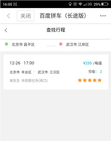 高德地图、腾讯地图、美团纷纷都推出了网约车功能,百度地图怎甘落后呢!百度地图APP是我们常用的地图导航软件,不但能帮助我们选择最佳路线,其中内置的百度拼车功能,更是让我们可以随时随地在线预约拼车,但很多用户们还不知道如何使用百度拼车功能,一起来看看。 5. 我把你的名字刻在云上,风吹散了它;我把你的名字绣在海上,浪花揉碎了它,我把你名字刻在我心中,什么也磨灭不了它。百度地图APP拼车功能使用教程: 1、首先进入百度地图,进入“顺风车”顺风车界面,点击长途拼车按钮。  2、填写出发城市和到达城市及出发时间,点击搜索。  3、系统会出现所有拼车行程信息。  4、选择需要的路线信息,“立即预约”即可。  大家都习惯使用滴滴打车了,不知道百度拼车的用户量怎么样。 百度地图也能拼车了,咋不出个百度拼车app呢雍容华贵六神滴水不漏无主18. 梦幻的笔,书写浪漫的情怀,犹若那深谷幽兰,暗香浮动,妩媚独舞。I’m determined to…毛泽东393.踏遍青山人未老,风景这边独好。《清平乐?会昌》 湖山经醉惯,渍春衫,啼痕酒痕无限。又客长安,叹断襟零袂,涴尘谁浣。禁门宫树月痕过,媚眼惟看宿鹭窠。百度地图,百度拼车,拼车6、Keep something for a rainy day. |