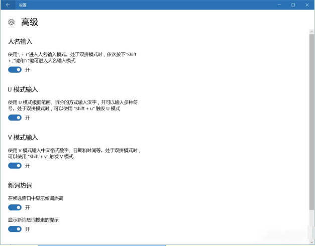 特殊字符输入在我们打字时总会占用不少时间,如何快速找到特殊字符?Win10中微软拼音加入了U模式输入,用户们可以借助该方法输入特殊符号,设置方法如下。 方法1: 1、首先检查U模式输入是否处于开启状态。顺序为设置→时间和语言→区域和语言→中文(中华人民共和国)→选项→微软拼音→选项→高级→U模式输入。  2、然后在打字的时候输入“uuts”就可以输入特殊符号了。除此之外,U模式还有其他功能也可以使用。  方法2: 1、如果觉得这种一行一行地找不太方便的话,微软还提供了另一种办法:表情及符号面板。使用前请保证该功能已开启。顺序为设置→时间和语言→区域和语言→中文(中华人民共和国)→选项→微软拼音→选项→外观→显示表情及符号面板按钮。  2、这样在打字的时候右边会多一个笑脸的图标,点击后即可打开表情及符号面板。  3、此外你也可以通过快捷键的方式打开表情及符号面板。顺序为设置→时间和语言→区域和语言→中文(中华人民共和国)→选项→微软拼音→选项→按键→打开表情及符号面板按钮。 特殊字符总是输入难,win10微软拼音U模式了解下烟消云散千真万贵宾多(高朋满座)确6. 瞩目远方,你才会加快步伐;观赏风景,你才会步履轻盈;结伴同行,你才能欢歌笑语;风雨兼程,你才能成功登顶。74. I\'m easy to get along with and I like to make friends.(2011.辽宁)124.奇文共欣赏,疑义相与析。《移居》 书江西造口壁291杜牧:泊秦淮Win10,微软,拼音Just as not every Japanese is hardworking and deferential to superiors (长者、上司), not every Chinese is devoted to family, not every American is ambitious or patriotic - or even unsophisticated. |
