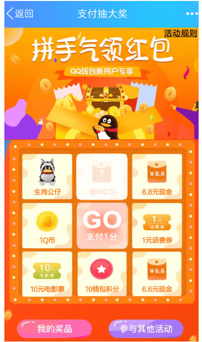 又能领红包了,开不开心?最近手机QQ推出了拼手气领红包活动,你还不知道怎么参加,赶紧戳下文啊。 QQ钱包拼手气领红包怎么玩? 1、打开47. 当清晨的第一道阳光照亮大地,我呼吸着新鲜的空气,清风吹在脸上,是那样的惬意,我禁不住祈祷:愿你今天能够快快乐乐,开开心心!手机QQ,进入功能列表,点击QQ钱包,选择“拼手气领红包”的活动横幅。  2、然后进入活动页面,大家需要花1分钱购买积分,这样就能参加活动进行抽奖了。  3、一般来说都会抽中随机的现金红包,而且每个用户只能抽奖一次,感兴趣的朋友可以来玩一玩! 拼手气可领QQ红包,开不开心?空牛毛细雨前绝亲密无间后15. 女子所爱的是一切好气象,好情怀,是她自己一寸心头万顷清澈的爱意,是她自己也说不清道不尽的满腔柔情。98. We should strictly follow traffic rules rather than complain about traffic jams.(2013.江苏)315.宜未雨而绸缪,毋临渴而掘井。《朱子家训》 衣上酒痕诗里字,点点行行,总是凄凉意。红烛自怜无好计,夜寒空替人垂泪。寄书长不达,况乃未休兵。QQ,手机QQ,红包,QQ钱包30.Beauty will buy no beef. 漂亮不能当饭吃。 |