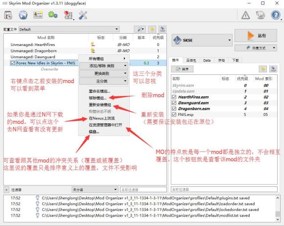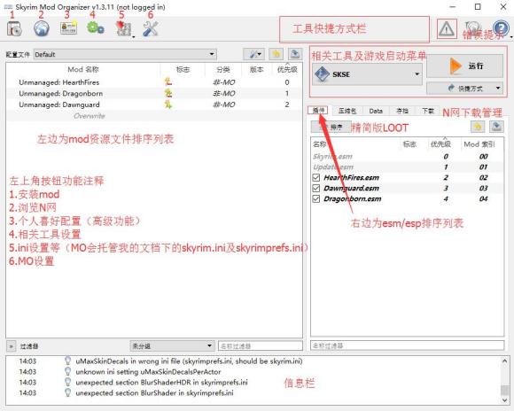 凡是玩大型游戏的小伙伴都免不了要安装Mod,但是有的游戏比如上古卷轴(玩家戏称之为少女卷轴、Mod卷轴)需要安装的Mod又比较多。如果让玩家一个个都手动安装的话实在太繁琐,而且还会出错,所以Mod管理器便应运而出。今天小编便给大家介绍一款非常好用、极其方便的Mod管理器——Mod Orgernizer。 教程目录 一、下载及安装MO 二、Mod的下载和安装 从N网下载的Mod通过MO安装在别处下载好的Mod 三、在MO里面添加相关工具 通过右侧的【数据】栏添加通过右侧的【编辑】快捷方式添加通过左侧的小齿轮添加 四、Mod排49. 遇到对的人之后,眼角眉梢都是你,四面八方都是你,上天入地都是你,成也是你,败也是你。序 五、关于闪退等问题 闪退 没有声音 fnis没有性别文件夹 六、MO必备工具 《上古卷轴5:天际》SKSE 脚本扩展工具《上古卷轴 5》菜单美化补丁SkyUI汉化版《上古卷轴 5 天际》LOOT排序工具《上古卷轴 5》FNIS 下面是正式教程。请小白一定保持耐心看完整个教程,大佬请随意!如果有未涉及到的部分,或者你遇到的问题本教程没有涉及到,请一定勤用度娘!请一定勤用度娘!请一定勤用度娘! 一、下载及安装MO Mod Oganizer Mod管理器(2.1.5) Mod Organizer MO管理器(2.4.2) 压缩包不需要安装,直接解压到一个剩余空间足够大的盘符当中(以后装Mod都会装到这里面)。千万注意:路径不要有中文,要不然会出错。 启动Mod Organizer,设置路径,英文教程可看可不看。   进入MO界面,先设置中文。   重启过后来看看MO管理器的基本界面:  我的文档里面的skyrim.ini和skyrimprefs.ini都会被MO托管,默认路径在ModOrganizer\profiles\Default\,如果确定使用MO,以后需要改这两个文件请去那里修改。 MO设置:  恭喜你已经完成了本教程最重要的一步—— 成功安装MO! 二、Mod的下载和安装1. 从N网下载的Mod 在Nexus下载Mod之后可以在右侧“下载”选项卡找到并双击安装  出现错误提示(当Mod包含Data文件夹以外的内容或多层嵌套时)    注意:用MO装Mod若出现红字则表示你的文件可能出错或没被识别,绿色则表示正常。 安装完毕后记得先在左侧资源文件处打钩激活,不然esm/esp文件不会出现  右键点击刚刚安装的Mod,看看菜单里的功能  2. 通过MO安装在别处下载好的Mod(常用) 先说一下,Enb、SKSE以及其他一些安装到Data文件夹以外(即游戏跟目录)的插件,无法用NMM或者MO来安装(因为他俩的权限就是Data文件夹,管不了游戏根目录)。 点击MO管理器左上角“安装Mod”按钮(也可以右键调出)    安装之后记得打钩激活。当Mod不包含Data文件夹以外内容时,安装Mod就这么简单。 补充:如果你的Mod一直安装不成功,可以将不需要的网址类广告删掉,再压缩成rar,然后再进行安装。这也是有的Mod找不到date文件的原因。 MO超详细小白入门教程(一)白心灵手巧浪滔车水马龙天33. 这世间所有的相遇都是难得的缘分,而无论在困境还是逆境里的陪伴,都是我所能想象的最美的故事,那么此生,苟富贵,勿相妒吧。在我的精心照料下,妈妈很快就康复了。《晏子春秋》31.为者常成,行者常至。 满庭芳 秦观不堪盈手赠,还寝梦佳期。MO超详细小白入门教程,MO,ModOrgernizer,Mod管理器This freedom from the group has enabled the American to become “Economic Man”-one directed almost purely by profit motive, mobile and unencumbered(不受阻碍的)by family or community obligations. |