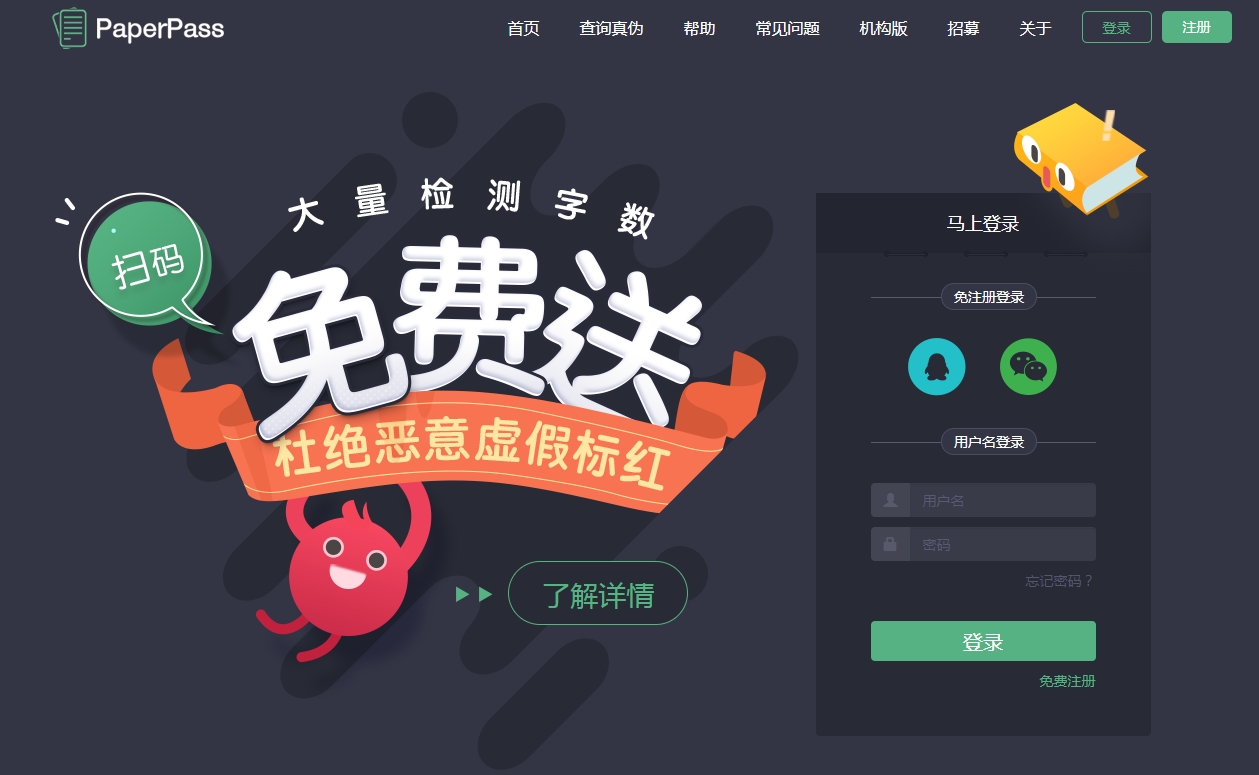 说到论文查重,除了知网, PaperPass 也是很多大学生选择使用的一款文章原创性检测工具,操作简单,而且价格便宜。除此之外,大家还会选择 PaperPaper 、学术家等平台进行文章查重,到底这些方式有何差别?哪个更好呢? 常用的论文查重方法对比 PaperPaper 搜索 PaperPaper 官网,点击进入平台,如图,你可以看到相关功能, PaperPaper 拥有丰富的数据资源库,涵盖十几种学术文献类型,比对结果准确,  页面显示了论文查重步骤,先要上传文档或者粘贴文本,确认信息,然后进行检测,耐心等待,即可查询结果,   注意:上传文档格式仅限于doc、docx、txt格式;如果你选择粘贴文本,需要复制完整内容。 学术家 百度搜索找到学术家官网,直接点击进入,如图,点击“注册”,注册个人账号,  完成注册,登录账号,进入检测中心,如图,输入论文标题和论文作者,然后上传论文,你可以点击“从本地文件导入”,也可以直接复制粘贴文本内容,  接着点击“提交检测”,出现弹窗,确认信息,确认无误,点击“提交检测”即可,  等待检测完成,点击“查看报告”,查看详细结果,你也可以下载PDF格式的检测报告。  PaperPass PaperPass 既有官网,也有软件工具,大家可以随意选择。搜索 PaperPass 官网,点击进入,注册账号,进行登录,  进入首页,如图,点击“提交论文”,输入论文标题、论文作者,上传文章内容,  点击提交检测,进入以下界面,如图,需要充值付费,然后点击“确认提交”,   等待检测,接着点击“查看报告”,查看具体对比结果。  总结:论文定稿之前,大家有很多机会可以修改文章,所以千万记得使用论文查重软件进行检测,至于选择哪种方式,大家自行选择。想了解更多精彩教程资讯,请关注完美下载。 3. 你们的恋爱不成功,全面的看,这是最好的结果。下意识里,你其实也希望有这样的结局。 -