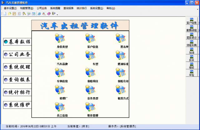 随着社会信息化的发展,为了方便人们的出行,越来越多的汽车租赁服务公司出现,租车管理软件可以帮助这些公司进行租赁业务管理、车辆资产管理、客户资源管理、财务收支管理、运营决策支持需求等。 同时,客户也可以通过互联网方便的2. 我们的生活有太多无奈,我们无法改变,也无力去改变,更糟的是,我们失去了改变的想法。查看车型信息、车辆租赁价格、租赁手续及增值服务内容,在网上就能进行预订,非常方便。下面是小编介绍的几款租车管理软件,希望对大家有所帮助。 汽车出租管理系统  汽车出租管理系统是一款功能强大、好用的方便汽车租赁管理的软件。该系统包括一下几大模块:客户管理、车辆管理、系统设置、综合业务、系统报表、系统管理、系统统计、系统维护、系统帮助九个大模块。 软件功能基础设置 基础设置包括对系统字典、部门、职员、驾驶员、往来单位、车辆档案的管理。同时可以管理车辆和驾驶员的图片资料。 日常处理 日常处理包括用车申请(带短信通知功能)、出车记录、加油记录、维修记录、规费管理、保养记录、违章记录、事故记录、年检记录、保险记录,用户可自定义费用类别,在规费管理中实现各类费用的管理。 车辆状态图 系统提供直观的车辆状态图,车管人员可以一目了然的掌握车辆的最新状态,并且可直接基于状态图进行日常操作,并提供出车单打印等功能,大大提高车辆管理效率。车辆状态管理中可以查看各种状态的车辆信息,包括全部、可用、出车、维修和其它状态。 报表管理 包括日常处理中的相关报表,以及车辆费用明细表和车辆费用统计表。 到期提醒 包括年检到期提醒、保险到期提醒、保养到期提醒、规费到期提醒、驾照到期提醒。  宏达出租车管理系统  出租车管理系统是一套小而全的管理软件,能够实现对出租车辆的管理,也可以方便快捷的查询车辆信息,该系统的主要功能有车辆管理、公司管理、信息查询、期间统计、车辆报警。 礼仪租车业务管理系统  宏达礼仪租车业务管理系统是一款专门提供租车业务的管理软件,适用于礼仪公司和车辆租赁行业,通过这款软件,可以帮助该行业的人轻松管理礼仪租车业务。 特点介绍 1. 基础设置:公司信息、车型、保险信息、燃油标准、员工信息、业务标准登记; 2. 客户信息:客户信息登记、客户定价登记、客户信息查询; 3. 业务管理:车辆调度信息、业务信息确认、未核实业务查看、未结算业务查看、期间内业务费用汇总、期间内业务员工资查看; 4. 车辆管理:车辆信息登记、加油登记、维修登记、事故登记、车辆信息查询、期间加油汇总、期间维修费用汇总、期间交通事故查询 吊车出租财务管理系统  宏达吊车出租财务管理系统是一款用于吊车出租公司使用的车辆财务管理软件,可以方便快捷的查询吊车的信息。该软件的各种操作既可以通过菜单进行,又可以通过系统的管理树导航进行,极大提高工作效率。 系统在功能方面主要包括:车辆管理、驾驶员管理、吊车出车记录、收益管理、工资提成管理、车辆赢利查询、欠款汇总查询。 其他功能:维修、投保、缴费、年审、事故、违章、投诉、费用支出、其他收入、油耗、轮胎等功能。 以上就是小编介绍4款租车管理软件,如有疑问,欢迎随时联系小编。 4 款租车管理软件推荐,汽车租赁公司必备分秒必争秋高拥挤不堪气爽31. 我轻轻拾起一片枫叶,那红彤彤的叶面上有着清晰的时脉,边缘上长出均匀的锯齿,样子虽然像伸开五指的小手,但颜色却像一团燃烧的火焰。do harm to / do ... harm 伤害;对……有害116.非学无以广才,非志无以成学。《诫子书》 无情不似多情苦,一寸还成千万缕。天涯地角有穷时,只有相思无尽处。千载琵琶作胡语,分明怨恨曲中论。汽车出租管理系统,宏达出租车管理系统,礼仪租车业务管理系统,吊车出租财务管理系统,租车管理软件In consumer - driven industries, innovation, product differentiation, and creativity are crucial to lasting success. |