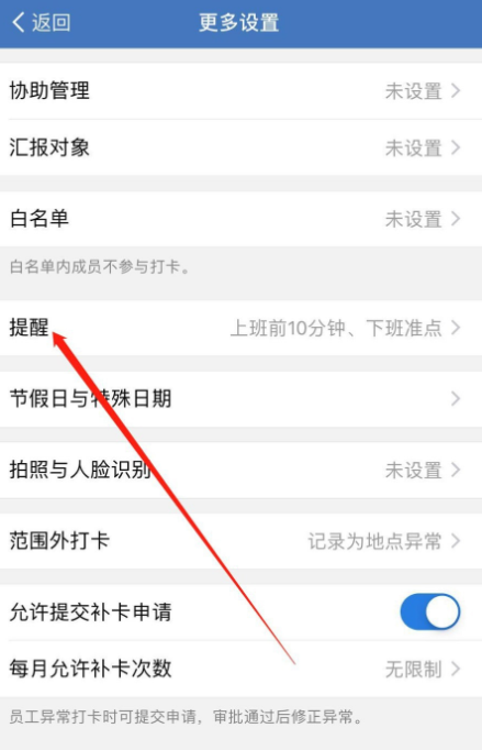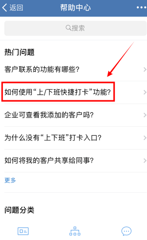 企业微信 是一款非常流行的网络办公即时通讯软件,管理员需要设置考勤规则,规范员工利用手机进行上下班打卡。当然了,如果遇到特殊情况,很多人会忘记打卡,在此小编建议设置打卡提醒。 企业微信如何设置打卡提醒? 在手机中打开企业微信,进入界面,点击下方【工作台】,选择【打卡】功能,  进入打卡服务窗口,点击切换【上下班打卡】,然后点击底部的【规则】,  如图,点击右上角【+】,进入添加规则界面,点击【更多设置】选项,   点击【提醒】,分别设置上班提醒和下班提醒,最后点击确定即可。   另外,很多人对于企业微信的上下班快捷打卡功能存在疑问,那么不妨看看官方说明。 打开企业微信,进入主页,点击下方【我】,选择【设置】,  进入设置界面,如图,点击【帮助中心】选项,查看热门问题,点击【如何使用“上/下班快捷打卡”功能?】,   如图,查看上下班快捷打卡功能的相关说明。  了解更多精彩教程资讯,关注 完美下载14. 因为我知道你是个容易担心的小孩,所以我将线交你手中却也不敢飞得太远。 。 -