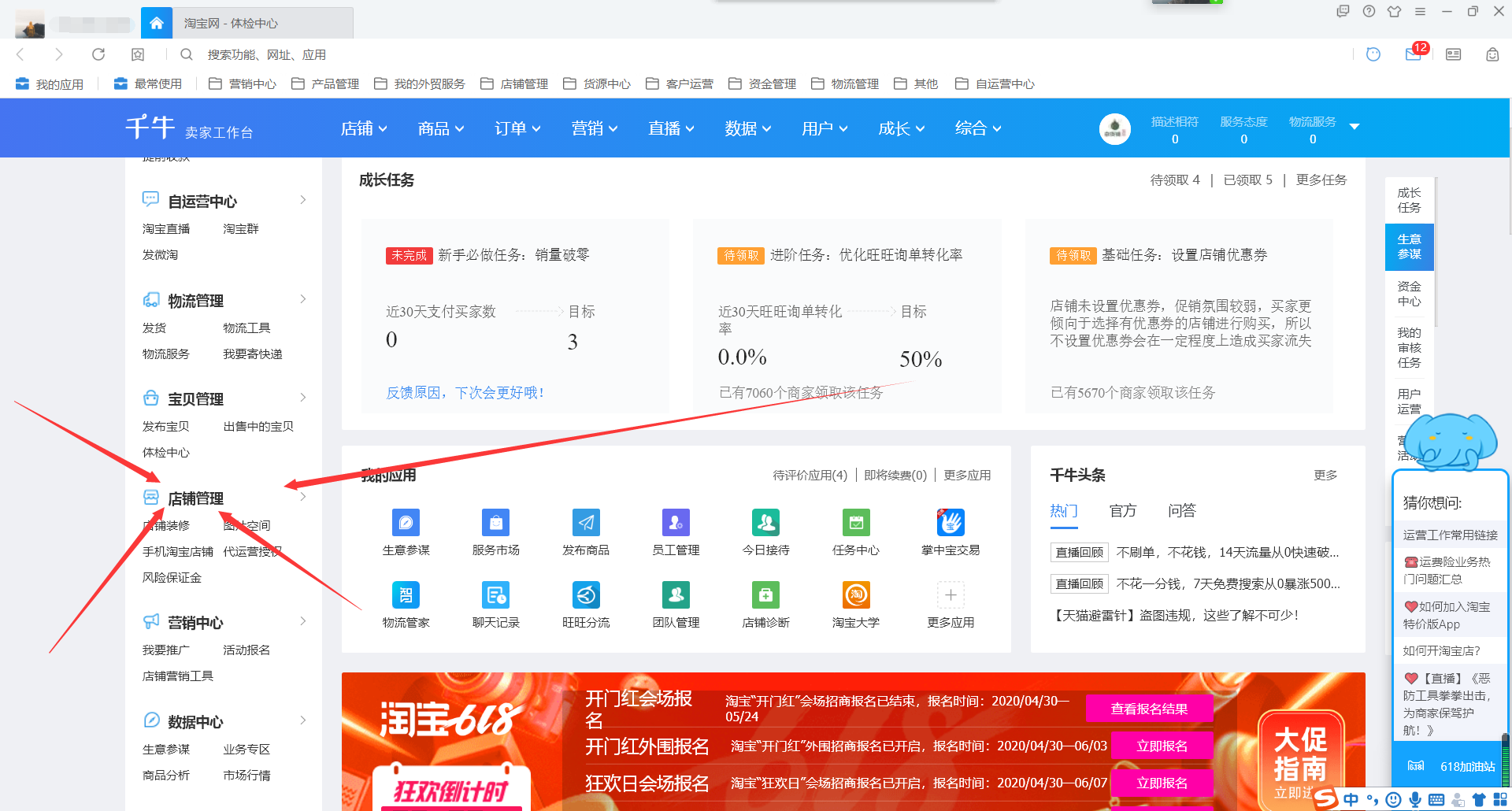随着电商模式的爆火,越来越多的人开设了淘宝店铺,但是有些人只顾着学习如何运营店铺,没有仔细了解平台规则,导致店铺违规。如果出现店铺违规现象,商家需要按照平台处罚规定,通过千牛工作台进行考试。 如何通过千牛工作台参加店铺考试? 1. 在电脑中打惠子知我拼音:huì zǐ zhī wǒ释义:比喻朋友相知之深。出处:惠子指惠施,战国宋人,在先秦诸子中属名家,为庄周契友。惠死后,庄周过其墓,曾借匠石斫垩的寓言,感慨自夫子之死也,吾无以为质矣,吾无与言之矣”。见《庄子·徐无鬼》。示例:~,夫何间然。★李白《与贾少公书》开千牛,输入账号,登录 千牛工作台,进入界面,  2. 进入首页,如图,在左侧栏点击【宝贝管理】,弹出菜单选项,选择【体检中心】,   3. 点击进入体检中心,如图,正中间会显示店铺体检,然后查看违规处理及市场管理,看看自己的淘宝店铺是否出现违规,  4. 如果存在违规记录,在体检中心就会显示考试入口(卖家的考试题目会在处罚期满以后开放入口),点击参加考试就行了。 一般来说,没有违规的卖家是不需要进行考试的;如果淘宝卖家存在违规,平台会在处罚期满以后通过旺旺联系卖家来进行考试处理,不可以提前参加考试。了解更多精彩教程资讯,关注 完美下载 。 -