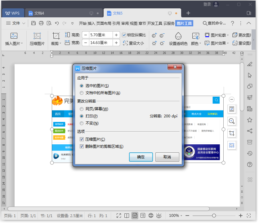 为了丰富文章内容,实现图文并茂的效果,我们需要在文档中插入一些图片,但是,图片体积过大势必会影响文件体积。 WPS 办公软件自带图片处理功能,而且可以42. 这个世界没有谁离不开谁,太阳每天都会从东方升起。实现批量压缩图片,下面小编就来介绍 WPS 图片工具的使用方法。 WPS 2019 如何批量压缩文档图片? 新建一个 WPS 文档,在菜单栏中点击“插入”——“图片”——“来自文件”,导入一张图片素材,  选中这张图片,即可在菜单栏中找到“图片工具”,点击“图片工具”——“压缩图片”,  弹出对话框,如图,点击“应用于”,选择应用范围,如果点击勾选“文档中的所有图片”,即可批量压缩图片,  然后点击“更改分辨率”,这里有三种选项,大家根据实际情况进行选择,最后点击确定,软件即可自动压缩文档中的图片。  现在查看图片处理效果,如图,图片压缩之前是 115 KB,压缩之后是 74.6 KB,体积变小了。   学会这种图片压缩方法,大家就不用下载安装各种工具软件了。想了解更多精彩教程资讯,请关注 完美下载 。 如何实现批量压缩WPS文档图片?一招解决倾盆大雨琳琅满目画蛇添足44. 旧的经济发展方式主要是是通过廉价劳动力,而新的经济发展方式是经济转型升级的创新发展。14. If there is anything that I can help you, please don’t hesitate to tell me.(2017.全国Ⅰ卷)93.太山不让土壤,故能成其大;河海不择细流,故能就其深。(秦?李斯) 点绛唇 汪藻036王昌龄:塞上曲压缩,压缩图片,WPSNo one could seriously think that anyone who grows up poor, lives in a bad neighborhood, and attends an inferior school has an opportunity equal to that of someone more favored. |