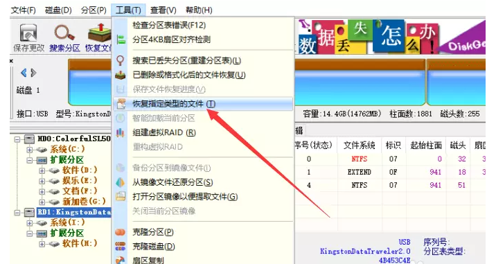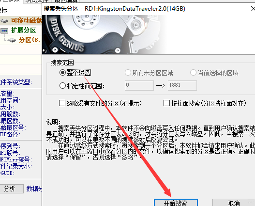 U 盘是大家在工作生活中经常会用到的存储设备,由于一些误操作,可能会导致U盘出现故障,例如一打开 U 盘就提示格式化。如果出现这种情况,我们可以借助 DiskGenius 进行修复,具体操作请看文章说明。 打开 U 盘提示格式化怎么办? 首先插入 U 盘,然后下载安装 DiskGenius ,运行软件,进入界面,软件会自动识别设备,  如图,在上方菜单栏中依次点击“工具”——“搜索已丢失分区(重建分区表)”,  弹出窗口,如图,选择搜索范围,勾选“整个磁盘”,然后点击“开始搜索”,等待搜索完成,  返回打开 U 盘,应该可以正常打开,一般来说,如果你遇到了提示 U 盘格式化的情况,可以通过文中方法进行解决。  另外,如果你不小心误删了 U 盘文件,也可以尝试通过 DiskGenius 进行找回,具体操作如下: 先将 U 盘插入电脑,双击运行 DiskGenius 软件,进入界面,如图,  在上方菜单栏中依次点击“工具”——“恢复指定类型的文件”,  弹出窗口,选择扫描范围,勾选“所有扇区”,点击“选择文件类型”,进行全选,然后设置输出路径,  点击&ld垂头搨翼拼音:chuí tóu dá yì释义:形容受挫后萎靡不振的样子。出处:汉·陈琳《为袁绍檄豫州文》方畿之内,简练之臣,皆垂头搨翼,莫所凭持。”示例:无quo;开始”,DiskGenius 就会自动扫描U盘,等待进度结束,即可恢复被删除的文件。  了解更多精彩教程资讯,关注 完美下载 。 -