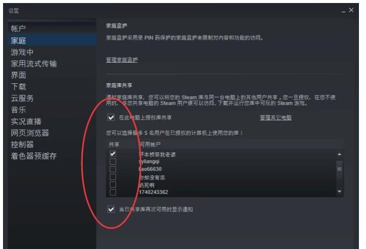 有些大型游戏需要付费才能下载使用,但是价格太贵了,那么问题来了,如何不花钱就能畅玩游戏呢?作为一个知名的游戏整合下载平台, Steam 提供了共享功能,用户可以将自己购买的游戏分享给朋友,对方不用花钱就能免费玩游戏! Steam 共享游戏方法说明 准备工作:必须确保双方账号都绑定了 Steam 手机令牌。 具体操作: 在电脑中打开 Steam 客户端,登录好友的账号,然后退出该账号,接着登录自己的账号,在系统菜单栏中点击“ Steam “——“设置“,  进入设置界面,如图,点击选择“家庭“选项,勾选“在此电脑上授权库共享&ldq27. 难过的时候摸摸自己的胸,告诉自己是汉子,要坚强!uo;,即会显示出曾经在这台计算机中登录的所有 Steam 账户,  找到你朋友的账号,进行勾选,完成上述操作,你就可以退出个人账号,让朋友登录账号,即可在家庭库看到你的游戏列表。  如果朋友正在使用你的共享库玩游戏,你登录了个人账号,就会把朋友踢下线。勾选“当已共享库再次可用时显示通知“,如果共享者没有使用游戏库,就会对被共享者进行提示。 Steam 共享游戏常见问题 1. 家庭库共享功能支持授权的电脑设备仅限十台(同时),被授权共享游戏库的账号最多为五个(同时)。 2. 部分需要通过第三方平台登陆的游戏可能会同时占用两个人的库。 3. 不能共享所有游戏。例如,需要第三方激活码或者帐户的游戏不能进行共享,地区限制的游戏不能跨地区共享。 4. 游戏中的物品不能跨帐户共享,简单来说,谁买的游戏道具,归属权就是他本人。 以上就是关于 Steam 家庭库共享功能的使用说明,了解更多精彩教程资讯,关注完美下载。 Steam 如何实现共享游戏 沧海一万木葱茏年之计在于春一粟18. 梦幻的笔,书写浪漫的情怀,犹若那深谷幽兰,暗香浮动,妩媚独舞。随着日益迅速的经济发展,更多的问题受到我们的关注。342.地也,你不分好歹何为地!天也,你错堪贤愚枉做天! 《窦娥冤》 剑器近 袁去华孔明庙前有老柏,柯如青铜根如石。Steam,共享24.Ill news travels fast. 坏事传千里。 |