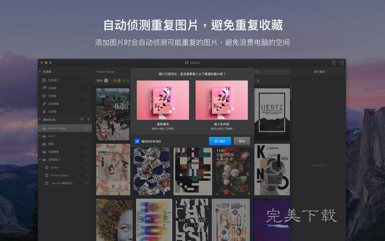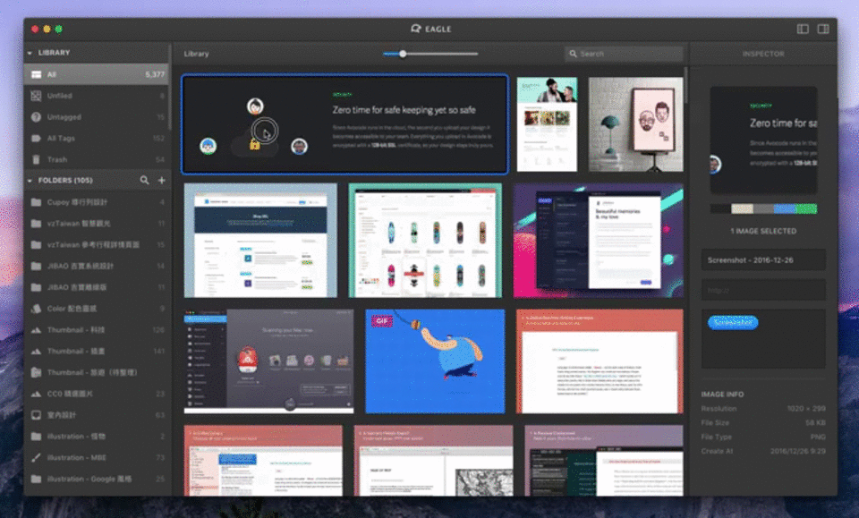 对于设计师或收图达人来说,整理电脑上收集的图片素材是他们必须做的事,但是这项工作不见得是轻松的,时间一长,电脑上收藏的图片越来越多,想用的时候都不知道放在哪儿了。如日常工作中因为某个项目所收集的图片,或是平时逛设计网站所保存的图,又或者是平常收集的一些源文件,管理起这些素材总是让人头疼,有了 Eagle 这款软件,就能轻松解决这个问题。  Eagle 是一款支持 Mac 和 Windows 系统的电脑图片素材收藏和管理工具,该软件可以帮助用户轻松整理设计作品. 屏幕截图. 海报. 网页设计. 图标等各种形6. 从未奢想荣华富贵,能和爱我的人和我爱的人静静走过生命中所有的春夏秋冬,就是我唯一的、最大的奢侈。式的图片,为用户的图片管理工作提供便利。 Eagle 图片管理工具能满足以下需求 1. 高效收藏:提供各种高效的收藏方式,迅速收藏看见的灵感。 2. 高效整理:迅速完成图片分类与整理的任务。 3. 容易查找:不需花费大量时间就能找到收藏的素材。 4. 同步与团队协同:与团队队员共享. 协同,个人使用可以在多台装置上同步。 5. 顺手的操作体验:产品如果做的不顺手,即使拥有在多强大功能都是不合格的。 好的素材管理软件应当可以方便快速地保存并有效地整理图片,可以让设计师快捷地检索到所需的素材,同时也可以方便团队之间进行分享。 Eagle 软件的功能介绍 1. 收藏功能 单一图片收藏 收藏网页的图片很麻烦?现在你有一个更好的方式。安装浏览器插件,只要在想要收藏的图片点击右键并点击收藏, Eagle 就会自动帮你下载起来。  批次图片收藏 网站里面有好多想要收藏的图片怎么办?快试试看 Eagle 提供的批次图片收藏的功能,只需要一个点击,所有的图片就储存到你的收藏夹里!  内容区域截图 你可以使用功能选单中的「区域截图」来启动截图功能迅速的将灵感收藏下来,而且网页的资讯也会自动帮你存下来哩! 网页整页截图 传统网页截图一次只能截取一张,而且还要自己决定截图的宽度,实在非常麻烦,如果想要一次收藏各种萤幕尺寸的截图就得要操作很多次才能完成。 Eagle 在网页截图功能上做了很棒的创新,你只需要一个点击,网页的各种尺寸都会为你截图收藏下来!  所有使用浏览器插件收藏的图片, Eagle 都会自动为你儲存图片来源的网站以及网站的名称。 萤幕截图(点击下载截图软件) 灵感随时会出现在眼前,想要立刻收藏起来怎么处理?这时候你可以使用 Eagle 提供的荧幕截图功能捕捉眼前的看到的任何灵感,并快地进行整理与分类,所有的截图 Eagle 都会自动帮你自动标注一个截图标签,透过这个标签,我们可以在未来找到所有荧幕截图的图片收藏。  2. 管理功能 当素材被我们收藏下来后,如何有效地整理这些素材就变得非常重要,在整理素材这个部分, Eagle 也提供许多实用的功能,可以让整理变得更轻松,分别有“资料夹”、 “标签”、 “自动输入标签”、 “批次分类”、 “批次重新命名”、 “防止重复收藏”等功能。 自动标注标签 时常使用标签功能的朋友应该会发现一个挺麻烦的问题,那就是常常需要输入已经输入过的标签,非常浪费时间!现在你可以不需要这样啦!在 Eagle 中,你可以为特定的文件夹设置自动输入标签,未来任何被添加到这个文件夹的灵感都会自动贴上文件夹特定标签!  在图片上标注想法 所有收藏下来的图片,你都可以在上方框选并标注想要补充的想法,不管未来哪一天查看,你都可以快速了解当初觉得很不错的地方在哪,团队使用时,也可以知道每个成员收藏当下的理由与想法。另外,图片标注内容与图片本身是分开独立的,也就表示你可以随时更改或移除标注,都不会影响图片本身。  防止重复收藏的提示 为了避免用户重复收藏了同样的灵感, Eagle 提供了相当强大的判断功能,可以在添加内容的时候迅速计算是否有相似同样的内容,也许是同一張圖片的不同尺寸. 格式, 这些都可以判斷出來,而且这个过程丝毫不会让你感觉到延迟或停顿。  以上是关于 Eagle 图片管理工具的简单功能介绍,还有其他特色功能等待用户体验。总的来说, Eagle 是一款非常用心去打磨开发的图片素材管理应用,功能丰富且易用,支持Win+Mac以及多种同步网盘兼容,对于有跨平台使用需求或团队共享使用的朋友来说非常重要! Eagle 并不是一款免费软件,但在各种细节与贴心功能看来还是值得的,大家可以免费试用 30天。 Eagle——简单直接、强大高效的图片收藏整理利器由车水马龙此枪林弹雨及彼真诚是美酒,年份越久越醇香浓烈;真诚是焰火,在高处绽放才愈显美丽;真诚是鲜花,送之于人,手有余香。最后但同样重要的是,我们日常生活中应该充分利用水。395.红军不怕远征难,万水千山只等闲。《七律?长征》 九 日行路难,行路难!多歧路,今安在?图片管理,截图,Eagle,图片收藏To reverse (check / control) the trend (tendency) is not a light task (an easy job), and it requires (demands / involves / entails) a different state of main towards (attitude towards / outlook on)… |