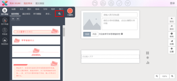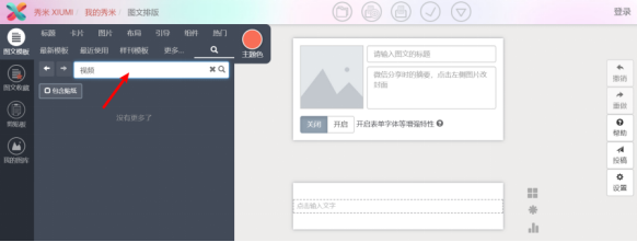 秀米编辑器是一款编辑微信公众号文章的软件,可以利用丰富的素材在短时间村酒野蔬拼音:cūn jiǔ yě shū释义:乡村酿的酒,田野种的菜。形容酒食淡薄,生活清贫。出处:清·无名氏《说唐》第三回守几亩田园,供养老母,村酒野蔬,亦可与知己谈心。”示例:无内完成文章的编辑。那秀米编辑器怎么插视频呢?今天小编就给大家亲自演示下。 秀米编辑器怎么插视频 1. 在浏览器中搜索"秀米"并进去官网网页,如下图:  2. 点击后会弹出一个界面,选择"新建一个图文",如下图:  3. 在弹出界面点击搜索图标,输入"视频"并搜索,如下图:   4. 在弹出界面点击模板样式,输入通用代码,视频插入就完成了,如下图:   以上秀米编辑器怎么插视频的内容,简单几步就完成了,大家可以试试哦!想学习更多有关微信公众号的运营技巧,请关注完美下载。 -