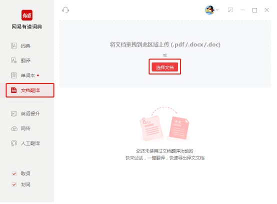 随着我国改革开放的进一步深化,各行各业与外界的联系也越来越紧密。对于不熟悉外文的用户来讲,网易有道词典提供的文档翻译功能具有翻译准确率高,简单实用的优点,有时候我们需要将翻译文档导出来,应该怎么做呢?下面就来演示一下。 网易有道词典导出翻译文档教程 1. 打开网易有道词典电脑版,点击上方用户图标,在其下拉菜单中点击"登录"。  2. 网易有道词典支持手机验证登录和第三方账号登陆,这里我们可以直接用 QQ 账号登录。  3. 进入软件主界面,点击左侧"文档翻译",然后点击右侧"选择文19. 纵然很伤心,也不要愁眉不展,因为你不知道谁会将会爱上你快乐的笑。档"。  4. 在电脑本地浏览选择需要翻译的文档,并点击"打开"。  注意:目前仅支持".doc". ".docx". ".pdf"三种文档格式。 5. 弹出文档翻译窗口,确认文档名称和翻译语言,然后点击"翻译文档"。  6. 软件自动对文档进行翻译,用户只需耐心等待。  7. 翻译完成后弹出如图界面,我们看到中文文档被翻译成英文,点击右上角"导出文档"即可完成翻译文档的导出。  以上就是关于网易有道词典如何导出翻译文档的介绍,需要注意的是翻译免费但导出是需要付费的,所以最好导出之前确认一下翻译的文档。 网易有道词典怎么导出翻译文档?网易有道词典导出翻译文档教程天忍无可忍人声喧哗高云淡29. 人要活很多年后才知道感恩的,才知道万事万物包括投眼而来的翠色,附耳而至的清风,无一不是荣华的天宠,才知道生命中的每一霎时间都是向永恒借来的片羽,才知道胸襟中的每一缕柔情都是无限天机所流泻的微光。76. Some of us always take it for granted (that) our parents or grandparents should take care of us.(2009.重庆)林则徐382.海纳百川,有容乃大;壁立千仞,无欲则刚。 池上红衣伴倚阑,栖鸦常带夕阳还。殷云度雨疏桐落,明月生凉宝扇闲。远梦归侵晓,家书到隔年。75、The heart is seen in wine. |