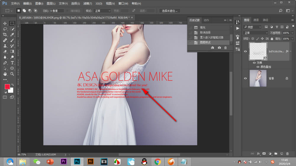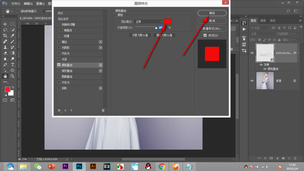平时办公,很多人会使用 Photoshop 进行图片处理,有时候需要针对文字或者形状更换颜色36. 举杯浇愁愁更愁,抽刀断水水更流,睡不着,咱数牛,心情不好,咱旅游,实在不行,咱去公园看看猴儿!,应该采取什么方法呢?今天小编就来支招,介绍两种修改图片文字和形状的方法,有需要的朋友可以参考学习。 如何使用 PS 修改图片文字的颜色? 方法 1. 打开 Photoshop 软件,导入一张图片,如图,点击选中文字图层,  2. 按住 Ctrl 键不松,然后使用鼠标点击图层前方的缩览图,就会将文字建立选区,  3. 点击下方的新建图层按钮,在文字的上方新建一个透明图层,  4. 点击前景色,选择红色,进行确定,  5. 然后按快捷键"alt+delete",填充前景色,注意,将原图下方的眼睛关掉,就不会出现黑边。  方法 2. 如图,点击文字图层后方,鼠标双击,  弹出图层样式对话框,选择"颜色叠加",点击后方的区域打开其界面,  如图,选择红色,点击确定,  文字立刻变为红色,注意,这一切的前提就是确保文字背景是透明的,如果不是,要先抠图。  其实使用 PS 修图并没有想象中复杂,大家只要多多练习就行了。了解更多精彩教程资讯,关注完美下载。 PS 修图之更改图片文字颜色,分享两种方法大井然有学无止境序雪封山2. 石榴在桌上滚落出来,浑圆艳红,微微有些霜溜过的老涩,轻轻一碰就要爆裂。爆裂以后则恍如什么大盗的私囊,里面紧紧裹着密密实实的、闪烁生光的珠宝粒子。09 人际关系欧阳修278.忧劳可以兴国,逸豫可以亡身,自然之理也。《伶官传序》 空眉皱,看白发尊前,已似人人有。临分把手,叹一笑论文,清狂顾曲,此会几时又?海上风雨至,逍遥池阁凉。Photoshop,PSWe don’t have to look very far to see (find out) the truth (validity) of this argument (proposition). |
