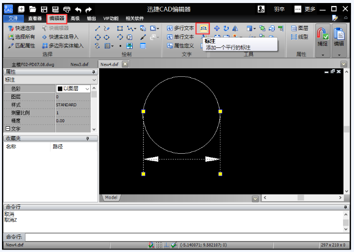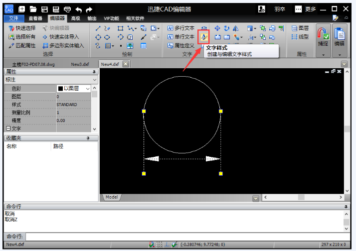 通常情况下,大家在绘制 CAD 图纸的时候会标注图形的角度度数,如果发现标注数字不显示,需要立即解决问题。下文整理了关于 CAD 标注数字无法显示的解决方法,大家可以了解参考。 CAD 图纸中无法显示标注数字怎么办? 打开 迅捷CAD编辑器,如图,先来绘制一个图形,然后在菜单栏中点击“标注”->“角度”选项,在圆形中选择任意两个点,  你会发现标注的角度数值无法显示,出现这种情况,可能是因为绘制图形太大而标注数值太小,将图形放大之后就会出现标注数值。  面对上述情况,我们可以采取两种解决方法,现在进行逐一说明。 方法一30. 人生百味,酸甜苦辣都要尝遍。失恋只是其中一味,再苦有黄连苦么?你一辈子吃几次黄莲?人到了一定年龄风花雪月就自动免疫,趁着还有感觉为什么不体验一下悲悲戚戚?、迅捷CAD编辑器专业版 打开迅捷CAD编辑器专业版,导入图纸文件,在菜单栏中点击“格式”->“标注样式管理器”选项,  跳出“标注样式管理器”对话框,选择当前使用的标注样式,然后点击“修改”选项,  进入“修改标注样式”窗口,点击“文字”->“文字高度”,修改高度值(数值大一些),点击确定按钮,现在就能显示图纸中标注的数值。  方法二、迅捷 CAD 编辑器标准版 打开迅捷 CAD 编辑器标准版,绘制一个圆形,点击“编辑器”,在文字功能区点击“标注”选项,添加一个平行的标注,但是标注的数字不显示,  现在点击文字功能区中的“文字样式”选项,跳出对话框,点击当前使用的文本样式,修改“文字高度”数值,然后点击“应用”,   完成以上设置,标注的数值就可以显示出来了,最后点击上方的“保存”按钮,保存 CAD 图纸。  了解更多精彩教程资讯,关注 wmzhe.com。 -