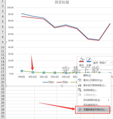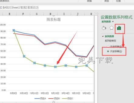 我们在制作 Excel 表格的过程中经常需要插入图表,折线图就是其中之一。如果折线图中有多个数据系列,其中某一个数据系列的比其他数据系列的数据小很多,这样的话该数据系列的折线就很难看出变化。其实这种情况下我们可以给该数据系列设置单独的纵坐标,即让整个折线图有两个纵坐标,现在小编就和大家分享 Excel 2016 中为折线图添加双纵坐标的方法。 Excel 2016 中为折线图添加双纵坐标的方法 打开需要添加折线图的 Excel 表格,选中需要绘制折线图的数据区域。  点击“插入”选项卡中“图表”选项组的折线图选项。  从小编的示例中可以看到项目 C 的数据很小,折线处于图表的最下方,没有指导寸进尺退拼音:cùn jìn chǐ tuì释义:前进一寸,后退一尺。指得到的少而失去的多,即得不偿失。出处:《老子》第六十九章不敢进寸而退尺。”唐·韩愈《上兵部李侍郎书》寸进尺退,卒无所成。”示例:无意义,现在小编就将项目 C 设置单独的坐标轴。  在需要设置次要纵坐标的数据系列折线上点击鼠标右键,然后点击“设置数据系列格式”。  在软件右侧的设置窗口中,点击“数据系列”选项中的系列绘制在“次坐标轴”。  此时就可以看到折线图中刚才选中的折线已经有单独的纵坐标了。  以上就是 Excel 2016 中为折线图添加双纵坐标的方法介绍,希望对大家有所帮助(了解更多 Excel 制图教程,关注 wmzhe.com)。 Excel 2016 制图技巧:在折线图中添加坐标轴漫天孤芳自赏飞绿油油雪25. 生活中的烦心琐事就如同空气中的粒粒灰尘,我们无法阻止它们进入我们的心田。所以,我们就应以广阔的胸怀去容纳它们,慢慢地,静静地,让他们沉淀下来。45. In conclusion, the advantages of studying abroad outweigh its disadvantages.400.天若有情天亦老,人间正道是沧桑。《七律?人民解放军占领南京》 到此因念,绣阁轻抛,浪萍难驻。叹后约、丁宁竟何据。惨离怀、空恨岁晚归期阻。凝泪眼、杳杳神京路。断鸿声远长天暮。泪湿罗巾梦不成,夜深前殿按歌声。Excel,Excel折线图,Excel折线图添加坐标The fact that the nearby city has a weakening economy does not prove that the city will not contribute significantly to tax revenues. |