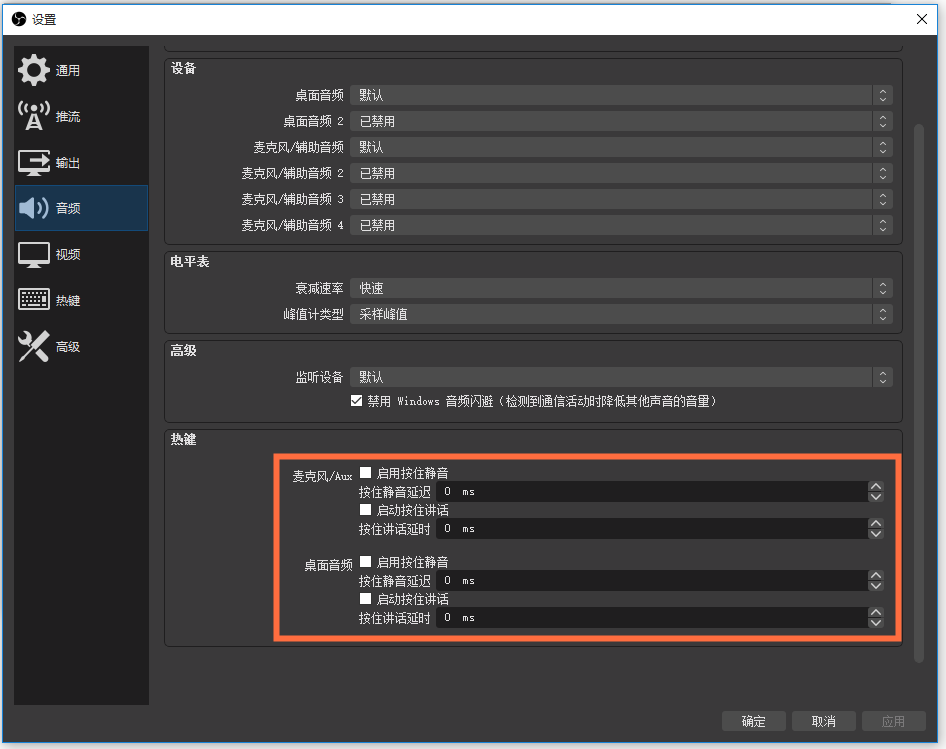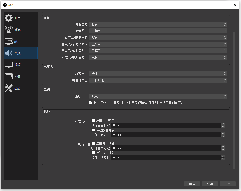 OBS Studio 是现下非常流行的的一款直播录屏软件,有不少用户反映,OBS 直播过程中有时候会出现噪声,非常影响直播环境。OBS Studio 直播过程中出现噪声怎么办?如何调整噪声延迟,请看文章说明。 OBS Studio 直播过程中出现噪声怎么办?方法一 双击启动 OBS Studio,进入软件界面,在菜单栏中点击“文件”->“设置”选项,  进入设置窗口,如图,点击“音频”选项,选择“麦克风/Aux”,对相关参数进行设置,调整延迟率,最后点击确定。   方法二 打开 OBS Studio 软件,进入界面,点击“混音器”一栏,然后点击“麦克风”或者“桌面音频”项目中的设置按钮,  展开菜单选项,如图,点击“高级音频属性”,  打开高级音频属性对话框,如图,你可以针对相关参数进行设置。  另外,你还可以在 OBS 软件中添加一些插件,用于降噪处理,如图,在“来源”一栏中添加“音频输入捕获”,创建来源,  鼠标右击“音频输入捕获”,弹出菜单,选择“滤镜”,  如图,点击下方“+”,选择“噪声抑制”,添加相关插件,   最后根据自己麦克风的噪音大小来调整抑制程度,非常方便哟。  无论是开直播或者录制视频,一定要确保周围环境,有需要的小伙伴可以参考 OBS 声音降噪方法。了解更多精彩教程资讯,关注 wmz碧血丹心拼音:bì xuè dān xīn释义:满腔正义的热血,一颗赤诚的红心。形容十分忠诚坚定。出处:《庄子·外物》苌弘死于蜀,藏其血,三年而化为碧。”示例:无he.com。 -