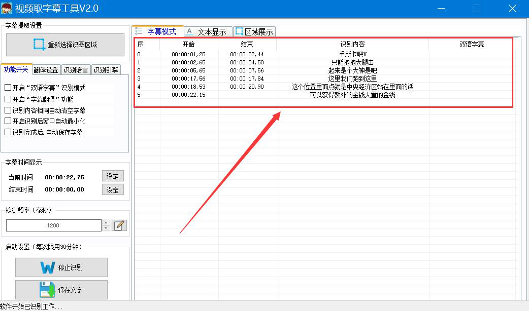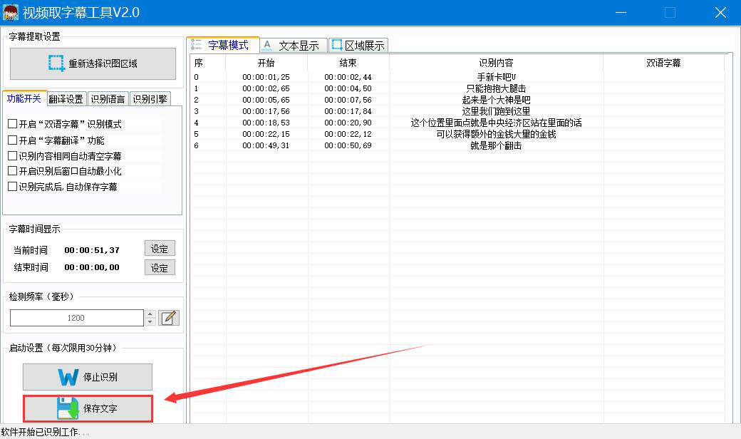 很多人在看视频的时候,发现视频的字幕非常经典实用,就会一边放视频一边在文档中人工录入视频字幕。可是,这样做太耗费时间了,为了解决这一问题,我们可以使用视频取字幕神器提取视频字幕。考虑到很多人都没接触过该软件,下面就为大家分享视频取字幕神器提取视频字幕的教程。  视频取字幕神器如何提取视频字幕? 1. 首先,我们打开视频取字幕神器,点击界面左上方的“自定义区域识别”按钮。  2. 然后,我们打开想要提取字幕的视频,并按住鼠标左键选取要提取视频字幕的位置,再双击完成区域识别定位。  3. 我们回到视频取字幕神器操作界面,点击界面左下方的“启动识别”按钮。  4. 接下来,我们回到视频播放器,点击视频左下方的播放按钮,视频取字幕神器便开始提取该视频的字幕。  5. 我们可以在视频取字幕神器中看到该视频的字幕在不断地被提取,识别的内容越来越多,如下图所示。  6. 当视频中的字幕被提取完成时,我们点击视频取字幕神器界面左下方的&ldquo碧血丹心拼音:bì xuè dān xīn释义:满腔正义的热血,一颗赤诚的红心。形容十分忠诚坚定。出处:《庄子·外物》苌弘死于蜀,藏其血,三年而化为碧。”示例:无;保存文字”按钮。  7. 最后,在视频取字幕神器弹出的另存为窗口中,我们对提取了视频字幕的结果文件进行命名,选择保存路径,再点击“保存”按钮即可。  想要获得视频中的字幕,没有必要一边看视频一边人工录入,我们可以使用视频取字幕神器来提取视频字幕,它提取的速度非常快。 视频取字幕神器如何提取视频字幕?视频字幕提取方法五颜六自解铃还须系铃人命不凡色47. 时间匆匆,总不会为任何事物停下脚步。蓦然回首,那日子就像在雪地里留下的脚印,有的深,有的浅……很高兴看到你在汉语学习方面的进步,我写信时告诉你关于下次课的一些事情。322.城中桃李愁风雨,春在溪头荠菜花。《鹧鸪天?代人赋》 画帘遮匝,新翻曲妙,暗许闲人带偷掐。前度书多隐语,意浅愁难答。不消红蜡,闲云归后,月在庭花旧阑角。五陵北原上,万古青蒙蒙。视频取字幕神器,字幕First of all, while asserting that real incomes are rising, the author provides no evidence to support this assertion. |