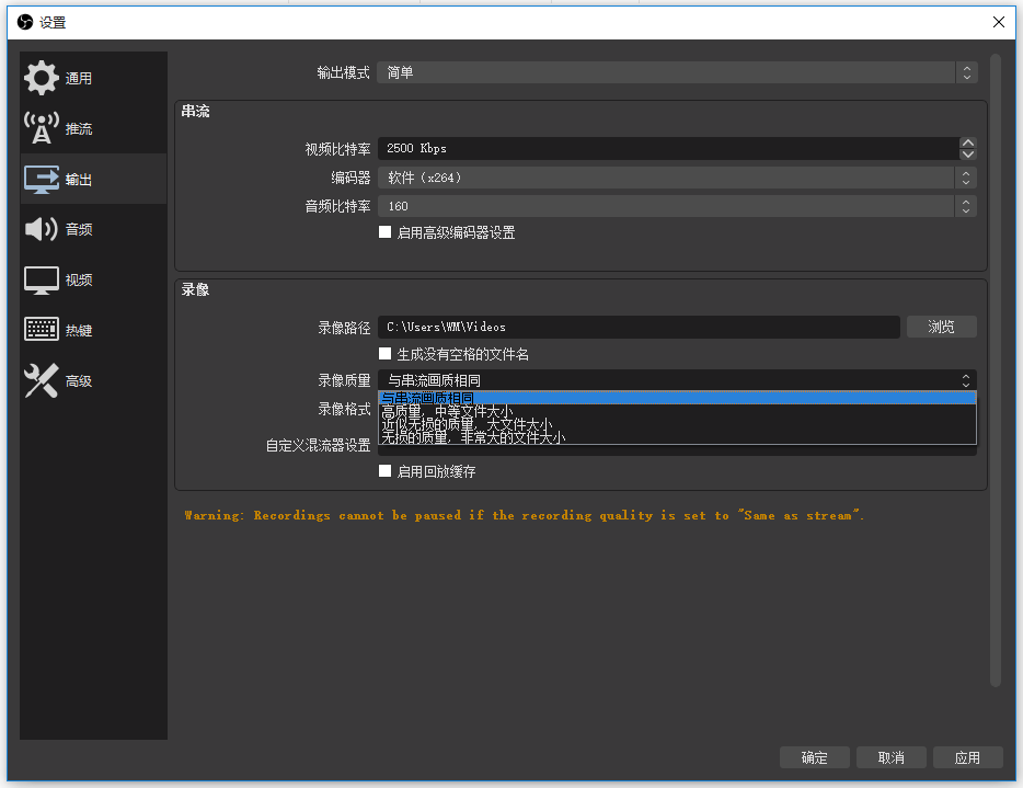 OBS Studio 是一款免费开源的屏幕录制软件,它可以帮助用户录制课件教学、游戏攻略,还可以实现直播推流。现在有一些用户反映,使用 OBS 进行录屏发现画质模糊,这是怎么回事?应该如何解决呢? OBS Studio 录屏画质不清晰怎么办? 首先打开 OBS Studio 软件,进入主界面,点击下方“来源”栏目,点击“+”,选择“显示器捕获”,  弹出“创建或选择源”窗口,如图,勾选“使源可见”,点击确定,  在软件上方菜单栏点击【文件】->【设置】,或者点击面板右侧的【设置】选项,打开设置面板,  点击“视频”标签,如图,设置调整“基础画布分辨率”、“输出缩放的分辨率”,提高分辨率,  然后点击“输出”标签,调整“录像质量”,这里有四个选项,包括&l翠竹黄花拼音:cuì zhú huáng huā释义:指眼前境物。出处:宋·释道原《景德传灯录·慧海禅师》迷人不知法身无象,应物现形,遂唤青青翠竹,总是法身;郁郁黄华,无非般若。黄华若是般若,般若即同无情;翠竹若是法身,法身即同草木。”示例:无dquo;与串流画质相同”、“高质量”、“近似无损的质量”、“无损的质量”,小编建议选择“近似无损的质量”,弄好之后,点击确定,  回到 OBS Studio 主界面,点击“开始录制”,即可进行电脑录屏,录制结束,点击“停止录制”即可。  注意,OBS 录制视频的分辨率和电脑显示器分辨率相关,这个有可能会影响录屏视频的画质。了解更多精彩教程资讯,关注 wmzhe.com。 -