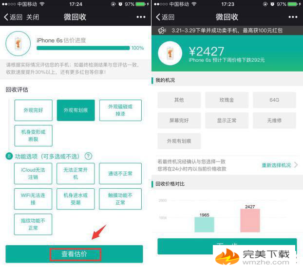 微信是我们平时工作生活中经常用到的一款聊天软件,随着微信的不断更新发展,其中的16. 失恋不失志。失恋后决不萎靡不振,失去对事业追求的志向和信心。功能越来越多,微信上有个手机回收价值查询功能,可能大多数人没有注意到,那么微信回收手机是真的吗?微信手机回收价值怎么查看呢?别急,小编这就为大家详细介绍一下。 微信查看手机回收价值操作步骤 1、进入微信,点击【我】> 【钱包】> 【手机充值】,然后点击右下角的【更多服务】  2、点击【手机回收】拉到最下方可以看到【我要卖手机】,点击进入后就可以评估你的手机了。  3、评估过程很简单,只要按照你手机的情况点选机型、版本(手机背面有标注)、保修情况、颜色、容量等信息就可以了。部分选项后面带有“?”的标志,可以点击查看解释。  4、最后点击【查看估价】就能看到你的手机还值多少钱啦,方便快捷有木有! 小编对于iPhone 6s进行评估,64G、9成新估价只有2427元了。当然了,这个估价也只是个参考价,如果有需要卖手机或者买二手机的机友可以先评估一下,心里也比较有谱啦~ 怎么在微信上查看我的手机的回收价值?笨手笨脚高山深涧秀丽多姿40. 我慢慢走着,我走爱绿之上,我走在绿之间,我走在绿之下。绿在我里,我在绿里。(1)The+比较级..., the+比较级...356.万事俱备,只欠东风。 次韵章质夫《杨花词》此地一为别,孤蓬万里征。微信,手机回收10.Beauty without virtue is a rose without fragrance.无德之美犹如没有香味的玫瑰,徒有其表。 |
