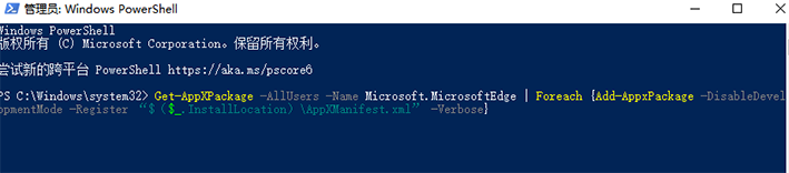 一些小伙伴在升级了win101909版本之后,打开浏览器上网的时候会出现花屏的情况,尤其是edge浏览器。更新win101909后浏览器上网经常花屏如何解决?其实可使用管理员Windows Powershell,通过命令行来解决问题,一起来试试吧~ 存亡继绝拼音:cún wáng jì jué释义:存保存;继接续。恢复灭亡的国家,延续断绝了的贵族世家。出处:《论语·尧曰》兴灭国,继绝世,举逸民,天下之民归心焉。”《公羊传·僖公十七年》桓公尝有继绝存亡之功,故君子为之讳也。”示例:他是要明王道,辨人事,分明是非善恶不肖,~,补敝起废,作后世君臣龟鉴。★朱自清《经典常谈·史记汉书第九》 更新win101909后浏览器上网经常花屏如何解决 1.同时按下【win】+【s】搜索框直接输入:【Windows Powershell】,在【Windows Powershell】上单击右键,选择【以管理员身份运行】   2.在打开的【管理员:Windows Powershell】窗口中输入以下命令: 【Get-AppXPackage -AllUsers -Name Microsoft.MicrosoftEdge | Foreach {Add-AppxPackage -DisableDevelopmentMode -Register “$($_.InstallLocation)\AppXManifest.xml” -Verbose}】  3.以上步骤完成之后大家关机重启即可正常了。 -