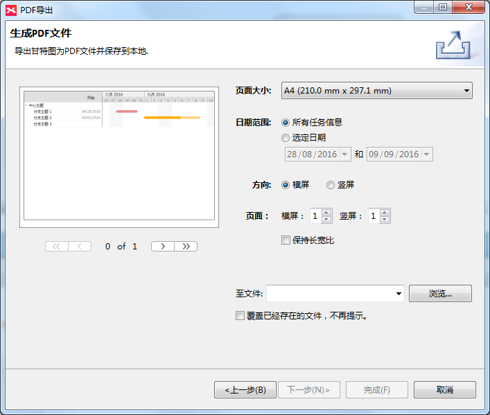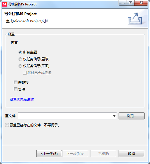 XMind软件是一款高效的思维导图软件,它可以将你的所有想法变成有形的图画,协助用户快速捕捉创意与灵感,从而能够更好的促进团队的沟通和协助。在XMind中,可以将思维导图转变为甘特图,甘特图是项目管理最佳实践,当你项目管理结束后,你还可以将其导出进行保存。允许导出甘特图为图像/PDF,或打印甘特图,今天,我们一起来看看关于甘特图的导出。 XMind导出甘特图教程介绍 我们首先在XMind中绘制好导图,并且添加任务信息。点击界面右上角的甘特图图标,来打开甘特图视图。  XMind会根据你的任务信息来自动生成一个甘特图。  XMind允许我们杯弓蛇影拼音:bēi gōng shé yǐng释义:将映在酒杯里的弓影误认为蛇。比喻因疑神疑鬼而引起恐惧。出处:汉·应劭《风俗通义·世间多有见怪》时北壁上有悬赤弩照于杯,形如蛇。宣畏恶之,然不敢不饮。”示例:金玦厖凉含隐痛,~负奇冤。★清·黄遵宪《感事》诗在“甘特图”视图中直接添加/修改任务信息,包括开始/结束日期、被指定人、优先级和进展。 当我们想要导出该甘特图时,点击甘特图视图的右上角试图菜单,在试图菜单中选择导出XMind甘特图的方式。  打开XMind甘特图视图后,我们可以直接在甘特图中进行补充编辑。 XMind中如何导出甘特图为图片? 当我们需要导出XMind甘特图时,点击甘特图右上角的视图菜单,选择“导出到图片”选项。  跳出生成单张图片窗口,我们根据个人需要,选择导出的图片格式,时间范围。  正中显示着将XMind甘特图导出为图片的预览,通过下方的滑动锁调节大小查看细节,最终确定后,选择保存的文件位置。 点击勾选是否覆盖已经存在的文件,一一进行上述操作后,点击最下方的完成,便可进行导出。 导出到Project 在XMind中,打开甘特图视图,完成对甘特图的补充编辑。点击右上角的“视图菜单”,选择导出到Project选项。在跳出导出窗口中,我们可以通过简单操作生成Microsoft Project文档。选择目标内容,设置是否包含超链接、备注内容,可以点击设置优先级映射,当然这个你可以提前在选项中设置好,最后设置保存文件的位置,点击完成即可。  导出到PDF 点击导出到PDF选项,弹出PDF导出窗口。在窗口内可以设置导出的规格、范围、取向等。XMind支持多页面导出,你可以设置横屏、竖屏的页面,在左侧可以对导出情况进行预览。设置保存路径后,点击完成,便可进行导出。 XMind导出甘特图教程介绍骄阳万象更新似千古绝唱火7. 人生的路途漫长又曲折,在前行的路上我们也许会迷失了方向,也许会沉迷于路景,很多的迷雾和错误的路标会误导我们,让我们无法前行甚至使我们朝相反的方向前进,此时,我们只有找到自己的位置,才能一步步地接近目标,接近成功。be regarded as 被认为 / 视作;a means of ……的方式龚自珍384.我劝天公重抖擞,不拘一格降人材《己亥杂诗》 霜天晓角 范成大渔舟逐水爱山春,两岸桃花夹古津。XMind70、You cannot have your cake and eat it. |