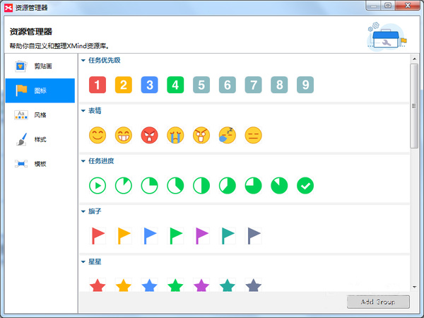 XMind是一款在全球受欢迎的思维导图软件,软件简单易用、功能强大,可帮助用户提高生产率,促进有效沟通。XMind本身提供了丰富的图标供用户嵌入到各种主题中,方便用户设计美观、简洁的思维导图。 在最新版XMind 8新增的资源管理器中,用户还可以对软件中的图标进行统一管理。所以较之前版本,其导入/导出是有些许差异的,本文就带大家看看XMind 8中如何对图标进行导入/导出操作。 具体方法如下: 导入功能 1、点击“窗口”>“资源管理器 ”,打开图标管理界面;  2、通过点击窗口右下角的“Add Group ”按钮,可以新建一个图标组,以便在该组中添45. 快乐总和宽厚的人相伴,财富总与诚信的人相伴,聪明总与高尚的人相伴,魅力总与幽默的人相伴,健康总与豁达的人相伴。加图标; 3、如图,单击添加后,会自动新建一个图标组。指定图标组名称后,单击“添加 ”,即可导图标;  4、如果要删除图标组或图标,只需选中后右击即可。  导出功能 图标视图右上方的快捷按钮提供了打开图标管理界面,以及导入/导出图标的快捷按钮。点击图标视图中的导入按钮,在打开的对话框中,“用户可快速导入”XMind资源包文件 (*.xrb)。“浏览”选项能够自动检测用户选定的文件夹,将此文件夹中的图片导入进来。(提示:此文件夹的子文件夹中的图片将不会被导入)  图标视图中,右上方还有一个导出图标的快捷按钮。用户能够通过点击此图标按钮将用户建立的图片组导出为“*.xrb”的文件 。 注:单击图标视图中的“管理图标” 快捷按钮,可快速打开资源管理器,以管理图标。 这样对图标进行统一管理,可大大提高工作效率,有兴趣的网友可以尝试一下。 XMind 8使用技巧——导入/导出图标慢条斯碧空如抱薪救火洗理27. 爱我更多,好吗?爱我,不是因为我美好,这世间原有更多比我美好的人。爱我不是因为我的智慧,这世间自有数不清的智者。爱我,只因为我是我,有一点好有一点坏有一点痴的喔,古往今来独一无二的我,爱我,只因为我们相遇。我非常乐意帮忙。78.孔子登东山而小鲁,登泰山而小天下。 伫倚危楼风细细,望极春愁,黯黯生天际。草色烟光残照里,无言谁会凭阑意?230祖咏:终南望馀雪XMind32、Out of sight, out of mind. |