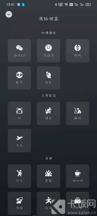 微信我的状态怎么设置?在微信的最新8.0版本中,我们可以根据自己的状态,添加专属的个人状态,那具体怎么添加呢,在哪里可以添加个人状态,微信我的状态怎么添加?微信我的状态在哪里看?下面就和小编一起来看看吧! 1.微信可以添加我的状态功能,需要将手机微信升级到8.0及以上版本,点击这里下载微信8.0版本>>  2.更新之后,在【我】的页面,点击微信号下方的【+状态】按钮,进入添加我的状态;  3.随后在我的状态页面,选择需要添加的状态,点击选择需要添加的状态进入详情添加页面;  4.然后输入想要说的内容,类似于个性签名一样的,点击右下角的【就这样】完成状态添加;  5.当我们完成状态添加之后,我存而不论拼音:cún ér bù lùn释义:存保留。指把问题保留下来,暂不讨论。出处:《庄子·齐物论》六合之外,圣人存而不论。”示例:其源虽出于《洪范》,然既为术数之学,则治经者~可矣。★清·陈澧《东塾读书记·尚书》的页面将会如下图所示(背景色根据每次添加状态的背景色为主,每次都不相同);  6.发布之后,好友可以通过消息页面、通讯录页面,查看到到您添加的个人状态;  7.点击进入与您的聊天页面后,点击最上方昵称后的“我的状态”,即可查看到你的状态,可以进行点赞等操作。  以上就是微信怎么添加状态的全部内容了,希望以上内容对您有所帮助! -