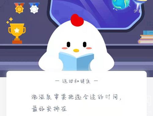 泡温泉需要挑选合适的时间,最好安排在?在支付宝蚂蚁庄园每日一题中,12月9日的问题是问泡温泉需要挑选合适的时间,最好安排在?空腹可以泡温泉吗?泡温泉需要挑选合适的时间,最好安排在?吃饭后可以泡温泉吗?下面就和小编一起来看看吧! 【小编推荐:最新今日蚂蚁庄园答案>>】  问题:泡温泉需要挑选合适的时间,最好安排在? 选项:空腹、饭后1-2小时 答案:饭后1-2小时  56. 我希望我跟你的名字能写在一起,不管是在婚礼的喜帖上,还是在葬礼的墓碑上。因为泡温泉会消耗我们身体中的能量,所以如果空腹泡温泉会出现能量不足而导致头晕的症状,最佳的时候是吃饭后的1-2小时内。 泡温泉能促进血液循环,对于体力消耗较大,处于饥饿状态的人若泡温泉,可能会导致低血糖、晕厥。 而刚吃饱泡温泉则有可能出现消化不良甚至脑溢血的严重状况,为了避免这些危害,饭后间隔1-2小时左右泡温泉比较适宜。 饭后1-2小时进行泡温泉这项活动是最好的,因为此时胃中的食物已经消化的差不多,而且胃部也不再需要大量的血液供应,所以不会对胃肠部等消化系统进行影响。 而且在饭后泡温泉也可以为身体补充足够的能量,因此在泡温泉的过程中也不会出现头晕的症状。 以上就是泡温泉需要挑选合适的时间,最好安排在的全部内容了,希望以上内容对您有所帮助! 泡温泉需要挑选合适的时间,最好安排在目空一龙飞凤舞山明水秀切1. 在人生征途中有许多弯路小路险路暗路,只有意志坚定且永不停步的人,才有希望到达胜利的远方。我们被赋予新的机会和面临着新的挑战。李贺234.衰兰送客咸阳道,天若有情天亦老。《金铜仙人辞汉歌》 江国,正寂寂,叹寄与路遥,夜雪初积。翠尊易泣,红萼无言耿相忆。长记曾携手处,千树压、西湖寒碧。又片片吹尽也,几时见得?弦弦掩抑声声思,似诉平生不得志。A close (careful) inspection (examination / scrutiny) of this argument would reveal how flimsy (groundless / fallacious) it is. |