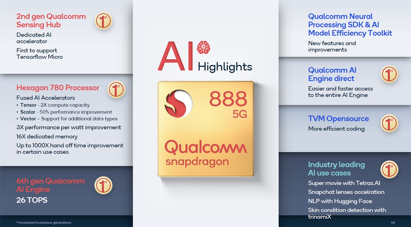 | 内容 | 在全新的骁龙88芯片中,很多用户都不清楚每个方面的参数让很多小伙伴们很好奇,想要知道这款最新5nm的芯片的详细参数,并且很多手机厂商都第一时间说推出最新搭载骁龙888芯片的手机,下面就让小编给大家介绍一下骁龙888性能参数。 ![]() 1、CPU 方面 888 是第一款正式采用 Cortex-X1 内核的芯片(ARM 基础设计有一些高通的调整)。与 A78 相比,X1 每个时钟可以多执行 33% 指令,SIMD 硬件增加了一倍,L1 和 L2 缓存的容量也增加了一倍。Cortex-X1 核心运行频率为 2.84GHz。 接下来是三个 Cortex-A78 核心组成的集群,时钟频率为 2.4GHz。还有由 4 个运行在 1.8GHz 的 A55 核心。CPU 还配备了 4MB 的 L3 缓存和 3MB 的系统缓存。 总的来说,Kryo 680 CPU 承诺比骁龙 865 芯片组的处理器性能提升 25%。功效也提升了 25%。 ![]() 2、GPU 方面 Adreno 660 目标是将渲染性能提高 35%,同时将能效提高 20%。它是为高帧率、低延迟的游戏而设计的。目标是为想要的游戏实现 144fps 游戏,但也有一些功能可以提升图像质量。 可变速率着色 (VRS)是 Nvidia 和 AMD(包括 PS5 和 Xbox Series X GPU)最近发现的一个新技巧。它允许着色器一次工作在两个或四个像素上,而不是只有一个。 这节省了计算资源,如果游戏开发者小心应用,渲染出来的画面在视觉上29. 春有百花,秋看月。夏有凉风,冬有雪。心中若无烦愁事,便是此生好时节!将无法分辨。VRS 可以将性能提高 30%。另外,它也可以用来提高电源效率。 ![]() 游戏快速触控可以减少多达 20% 的触控延迟。这在高达 120fps 的情况下有效,但在 60fps 的情况下最有效,因此所有游戏都可以利用它,即使它们不支持更高的帧率。 Adreno 660 支持 10 位 HDR 和子像素渲染。它还可以通过 Mura 补偿(“mura”或”clouding“是相邻像素校准不均的结果)提高 OLED 显示器的均匀性。 3、相机 骁龙 888 是首款采用三 ISP 的骁龙芯片(之前 800 系列芯片为双 ISP)。这样可以同时处理三个独立的相机流,有多种用途。首先,它可以处理三个 4K HDR 视频流,或者同时拍摄三张 2800 万像素的照片。 这也将使从超宽摄像机到宽幅摄像机再到远距离摄像机的过渡更加顺畅,因为每个摄像机都有自己的 ISP。此前的三个摄像头 / 两个 ISP 设计导致手机在视频流之间切换时出现 “跳转”。 ![]() Spectra 580 的三个 ISP 也是用于交错式 HDR,因为它们可以同时处理短、中、长曝光。骁龙 888 除了可以录制 HEIF 图像格式的 10 位 HDR 照片外,还可以录制前代产品的 HDR 视频功能(骁龙 865 支持 HDR10 + 和支持杜比视界视频)。 说到视频拍摄,新的芯片组可以以 120fps 的速度拍摄和播放 4K 视频,因此可以充分利用高分辨率的 4K 显示器。回到摄影方面,该芯片可以以 1200 万像素的分辨率每秒拍摄 120 张照片。 4、连接性 骁龙 888 这是首款使用骁龙 X60 5G 调制解调器的芯片组。而与骁龙 865 不同的是,调制解调器是集成的,而不是作为一个外部独立芯片。这款第三代调制解调器支持 sub-6 以下 5G 和 mmWave 毫米波。它提供高达 7.5 Gbps 的下行速度和高达 3 Gbps 的上行速度。 高通公司表示,FastConnect 6900 系统采用 Wi-Fi 6G(6GHz 频段 ax),它的速度可以达到 3.6 Gbps,是业界最快的移动 Wi-Fi。Wi-Fi 6E 标准还提供了更低延迟,这对于从本地 PC(或云端,5G 调制解调器也能提供帮助)进行流媒体游戏来说是一大福音。 此外,还支持双天线的蓝牙 5.2 技术,以及 aptX 套件的高品质、低延迟无线音频技术。 ![]() 5、AI 第六代 AI 引擎结合了全新的 Hexagon 780 和 GPU 的数字运算能力,提供了 26 TOPS(骁龙 S865 AI 算力是 15 TOPS)。功效也大幅提升,每瓦特的性能提升了 3 倍。 第二代 Sensing Hub 也降低了功耗。它可以在低于 1mA 的情况下工作,但可以处理比第 1 代更多的任务——现在 80% 的简单人工智能任务通过 Hub 处理,而不是必须唤醒强大的 Hexagon 处理器。这适用于简单的应用,如电梯和活动检测以及收听唤醒词。 ![]() 6、安全性 骁龙 888 是第一款符合内容真实性倡议标准的移动芯片组。它可以捕获加密密封的照片,其中包括防篡改的元数据,以证明图像的真实性(但以隐私敏感的方式进行)。 骁龙 888 还具有 Hypervisor,这一功能此前加入到面向 PC 的骁龙 8cx Gen 2 芯片中。这更多的是服务器和桌面的功能,因为它允许多个操作系统在同一硬件上运行,同时相互之间完全独立(所以,如果一个操作系统被破坏,其他操作系统的安全不受影响)。 ![]() IT之家获悉,骁龙 888 可以将每个应用都运行在自己的操作系统实例中,以获得最大的安全性。目前还不清楚我们是否会在安卓系统上看到这种情况,但很明显,骁龙 888 也将用于 ARM 驱动的平板电脑和电脑,因为在这些地方,这种虚拟化更为普遍。 7、快速充电 此前高通 QuickCharge 5 已经公布。当然,新的骁龙 888 也提供支持,这意味着它可以应对 100W + 的快充,同时将发热降到最低。它兼容 USB Power Delivery,并向下兼容前几代 QC,可以追溯到 2.0。 ![]() 以上就是骁龙888性能参数详情的全部内容,希望以上内容能帮助到朋友们。 骁龙888性能参数详情雾似轻龙争虎斗蛛丝马迹纱50. 好情绪才会有好风景,好眼光才会有好发现,好思考才会有好主意。03学校生活与体育活动322.城中桃李愁风雨,春在溪头荠菜花。《鹧鸪天?代人赋》 秋千院落重帘暮,彩笔闲来题绣户。墙头丹杏雨馀花,门外绿杨风后絮。春来遍是桃花水,不辨仙源何处寻。And in technology, when there are no conv