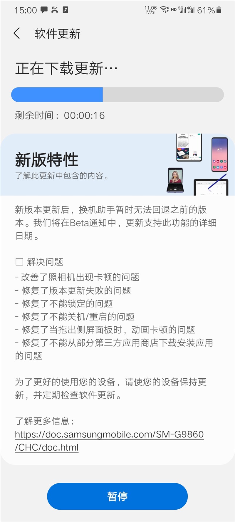 三星 Galaxy S20 系列现已推送 OneUI 3.0 beta4 版本更新:修复多个 bug,例如相机卡顿和不能关机 / 重启的问题,其他小功能更新暂未发现。那么OneUI3.0beta4更新了什么?下面就让小编给大家介绍一下。 据盖乐世部分网友反馈,更新后可能存在无法显示实时网速等问题。 解决问题: 改善了照相机出现寸兵尺铁拼音:cùn bīng chǐ tiě释义:比喻微小的武力。出处:宋·苏轼《策略五》不用寸兵尺铁,而天下屏息,莫敢或争。”示例:无卡顿的问题 修复了版本更新失败的问题 修复了不能锁定的问题 修复了不能关机/ 重启的问题 修复了当拖出侧屏面板时,动画卡顿的问题 修复了不能从部分第三方应用商店下载安装应用的问题  目前国行三星 Galaxy S20/Note20 已开启 One UI 3 测试版本招募,而S10/Note10 系列也即将开启内测。 功能上,OneUI 3.0 新增了屏幕双击熄屏、拍照界面可以同时对对焦点进行锁定和亮度调整、通知栏的快速按钮变得更方便,减少了用户的设置步骤,操作更直观。 在 UI 设计上,OneUI 3.0 的屏幕指纹识别提示图标变大,更加醒目、音量图标被转移到了侧边的音量键旁边,不再是 oneUI2.0 的中间位置,而且还增加了 AI 字幕显示,极大地方便了听障人士。 以上就是OneUI3.0beta4更新了什么的全部内容,希望以上内容能帮助到朋友们。 -