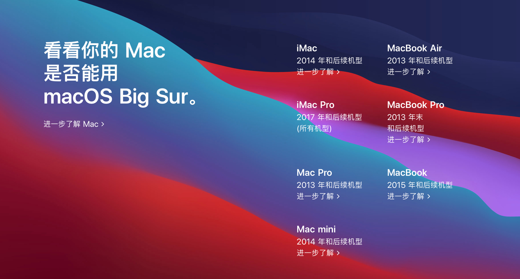 macOS Big Sur支持机型有哪些?经过小半年的测试之后,macOS BigSur 正式版终于在 11 月 13 日开放更新,在苹果发布会之后宣布可以更新也是帮助MacBook做了一波宣传,那么macOS Bi垂头铩羽拼音:chuí tóu shā yǔ释义:形容受挫后萎靡不振的样子。出处:《冷眼观》第五回正值宪太太发放那起不中用的家人出来,犹如斗败公鸡,一个个垂头铩羽,打从签押房门外经过。”示例:无g Sur支持机型有哪些?下面就让小编给大家介绍一下。  1、iMac2014年和后续机型能够使用; 2、iMacPro2017年和后续机型可以使用; 3、MacPro2013年和后续机型可以更新; 4、Macmini2014年和后续机型可以更新; 5、MacBookAir2013年和后续机型可以使用; 6、MacBookPro2013年末和后续机型可以更新; 7、MacBook Pro2015年后后续机型可以更新; 如果你的系统为 macOS Catalina,可以直接前往「系统偏好设置 > 软件更新」下载更新,或者通过 App Store 下载 macOS BigSur 完成更新升级。升级之前请确保 Mac 留有一定的剩余内存和存储空间,并且建议提前通过「时间机器」进行备份。  1、信息应用加入了最多 9 个的对话置顶等功能、提醒事项加入事项分配等功能、语音备忘录加入录音优化功能、地图应用支持骑行路线规划/车号限行提醒等; 2、桌面壁纸加入了几张 Big Sur 风格的动态桌面和深浅色桌面。在 11.0.1 测试版中新增的几张插画风格壁纸也出现在 macOS Big Sur 正式版当中; 3、此外,「系统偏好设置 > 电池」增加优化电池充电和电池用量记录的特性;  4、AirPods(第二代及以上型号)在 macOS Big Sur 和 iOS/iPadOS 14 系统之间支持自动切换。 以上就是macOS Big Sur支持机型有哪些的全部内容,希望以上内容能帮助到朋友们。 MacOS Big Sur支持机型有哪些画专心致关怀备至志蛇添足26. 感情是女生的全部,却只是男生的调剂04 环境保护和社会热点53.既来之,则安之。 从别后,忆相逢,几回魂梦与君同。今宵剩把银釭照,犹恐相逢是梦中。惟怜一灯影,万里眼中明。From what has been discussed above (Taking into account all these factors / Judging from all evidence offered), we may safely draw (reach / come to / arrive at) the conclusion that… |