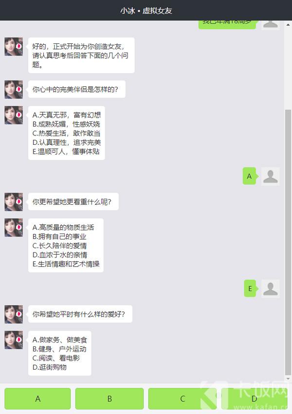 微软虚拟女友在哪里开启?在前不久,微软小冰上线虚拟女友功能,这是继虚拟男友功能之后,上线的另一款虚拟女友,那我们在哪里可以开启虚拟女友呢,微软虚拟女友在哪里开启,下面就和小编一起来看看吧! 1、微软小冰虚拟女友可以通过华为快应用、小米小爱同学、微博等途径开启,这里以微博为例;  2、打开手机微博,或者网页版微博,搜索并关注【小冰】,然后点击【私信】;  3、进入私信之后,发送【我要领一个女友】,等待小冰回复之后,点击网页链接进入开启(网页版微博可能无法跳转进入,复制链接再进入);  4、进入创建页面后,点击【进入聊天】按钮,进入创建账号页面;  5、然后我们使用手机号码注册,通过短信验证码验证,设置密码,注意手机号码在之后可用来找回虚拟女友;  6、在注册成功之后,进入小冰创造虚拟女友页面,在创造之前,需要先确认用户的年龄;  7、随后进入正式创造步骤,需要回答几个问题,这些问题关系到虚拟女友的爱情观、价值观、性格等等;  8、回答几个问题之后,需要给女友起给名字,输入名字,然后再回答确认,仅本次可修改,之后不可再修改女友姓名;  9、等待基本信息、爱情观定制完成之后,就可以获得自己的“女友”了;  以上就是6. 单相思是幻想。恋爱是写实的,非常写实。所以你一有现实恋爱的可能就逃跑,而对明明知道只能是止步于单相思的她,却追个不停。微软虚拟女友在哪里开启的全部内容了,希望以上内容对您有所帮助! 微软虚拟女友在哪里开启武大郎卖烧目瞪口呆饼对牛弹琴36. 碎了的心难再愈合,所以你一定不能事后后悔。现在人,科技先进,却越来越空虚,开着电脑,什么都不做,也迟迟不肯睡去,长大的代价,是不是就是心里有填不满的寂寞。高级名言谚语活学活用。欧阳修278.忧劳可以兴国,逸豫可以亡身,自然之理也。《伶官传序》 木兰花 宋祁道旁过者问行人,行人但云点行频。68、Do not teach fish to swim. |