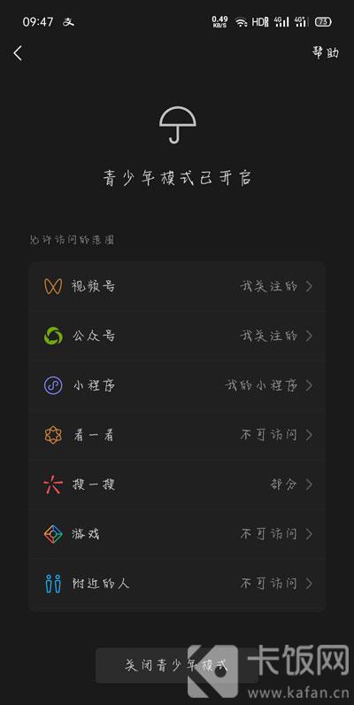 微信青少年模式怎么设置?在微信最新版本中,新增青少年模式,那我们在更新之后,想要使用青少年模式,该怎么开启微信青少年模式呢,微信青少年模式怎么设置,在哪里设置微信青少年模式,下面就和小编一起来看看吧! 1、打开手机中的微信,在【我】的页面点击【设置】进入微信设置中;  2、随后在设置中,找到【青少年模式】进入开启青少年模式;  3、然后勾选【我已阅读并同意……】,再点击【开启青少年模式】;  4、在开启之前,还需要进行登录密码验证,需要当前微信账号的密码,点击【验证】;  5、验证成功即可开启青少年模式,之后就可以设置青少年模式可允许访问的范围;  6、例如,设置视频号范围,点击进入设置,设置视频号是“不可访问”或者只能看“我关注的”,或者可以访问“全部”;  7、如果想要限制打开的微信小游戏,则选择“小程序”,选择可访问的范围是“我的小程序”,那么无法打开我的小程序之外的小程序;  8、如果你想要设置的权限,自己已经关闭了入口,那么会显示“不可访问”,无需再设置;  以上就是微信青少年模式怎么设置的全部内容了,希望以上内容对您有所帮助! -