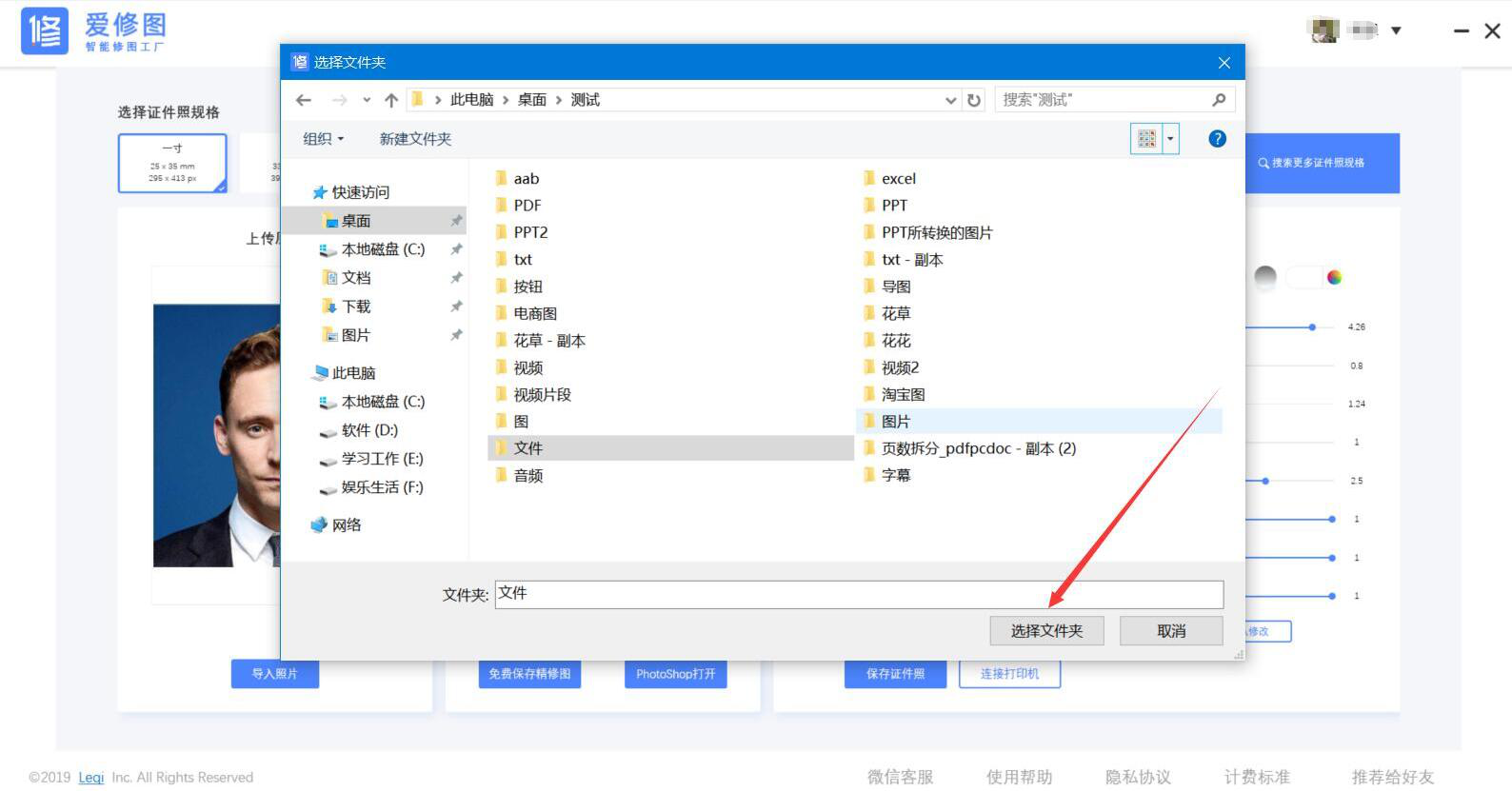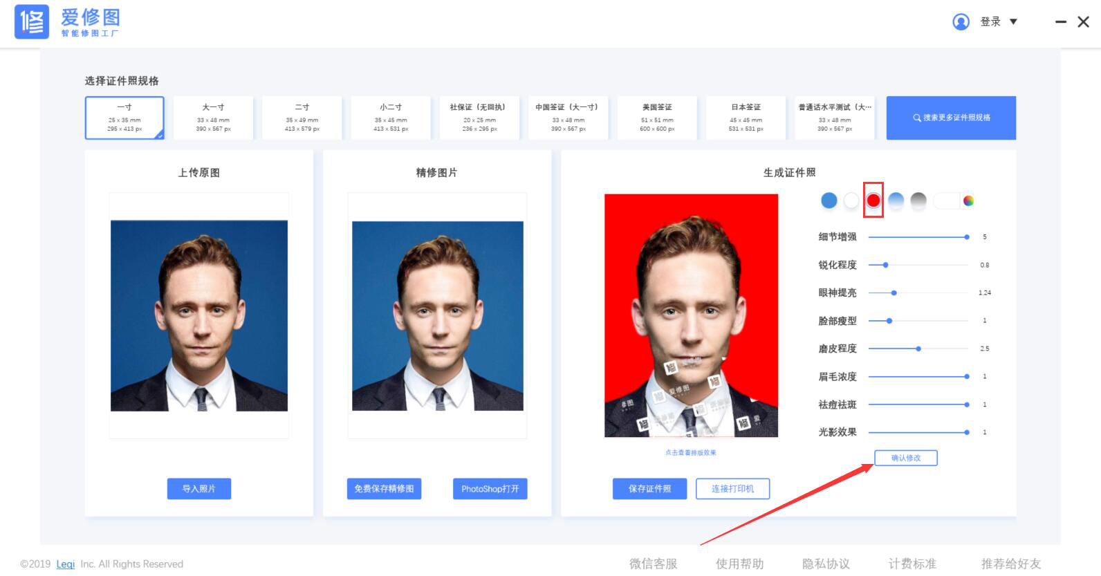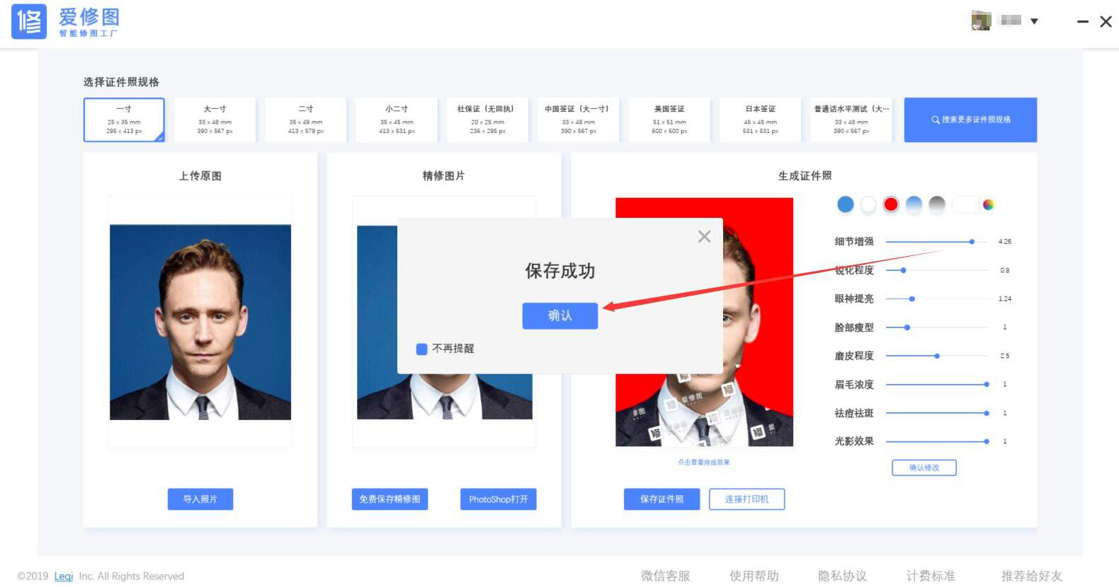 无论是工作还是生活,经常会用到证件照,而要求的证件照也会有所不同,比如说尺寸不同、背景不同。如果去照相馆拍照的话,花钱不说,还特耗费时间。为了解决这一问题,我们可以用爱修图软件制作证件照。虽然操作简单,但是很多人不懂操作,下面就为大家讲解怎么用爱修图软件制作证件照。  爱修图软件如何制作证件照? 1、首先,我们打开爱修图软件,先根据证件照的要求选择对应的尺寸,再点击“导入照片”按钮。  2、在弹出的窗口中,我们选择爱修图软件制作证件照时要用到的图片素材,并点击“打开”按钮翠竹黄花拼音:cuì zhú huáng huā释义:指眼前境物。出处:宋·释道原《景德传灯录·慧海禅师》迷人不知法身无象,应物现形,遂唤青青翠竹,总是法身;郁郁黄华,无非般若。黄华若是般若,般若即同无情;翠竹若是法身,法身即同草木。”示例:无。  3、然后,爱修图软件便会自动抠好证件照的背景,并且自动美化证件照人物。如果觉得美化的效果还要调整,就调整好,再点击“确认修改”按钮。  4、回到爱修图软件主操作界面,我们可以根据证件照的要求,点击应用对应的背景颜色,可以同步预览证件照效果。制作的证件照效果满意,就点击“确认修改”按钮。  5、用爱修图制作证件照若无需再修改,我们就点击“保存证件照”按钮。  6、此时,爱修图便会弹出如下图窗口提示,我们直接点击“确认”按钮。  7、接着,在爱修图弹出的选择文件夹窗口中,我们选择证件照制作好了后的保存路径,再点击“选择文件夹”按钮。  8、最后,弹出如下图窗口提示,说明爱修图成功地将制作好的证件照给保存到指定的路径了,我们点击“确认”按钮即可。  想要制作证件照,并不是非得要到照相馆拍照的,我们可以用爱修图软件来制作证件照。先自己拍好图片后,再上传到该软件,选好尺寸,它会自动修图,我们再应用自己想要背景颜色即可。无需任何修图基础,都可以轻松获得证件照。 -
