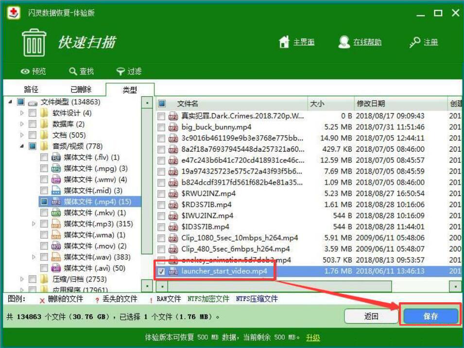 很多人在整理文件的时候,将重要的文件数据给删除了。试图从回收站将其找回,却发现回收站里没有该文件。那么,遇到这样的问题,我们可以用闪灵数据恢复软件恢复删除数据,找回原文件。考虑到很多人没操作过该软件,下面就为大家分享闪灵数据恢复软件恢复删除数据的教程。  闪灵数据恢复软件如何恢复删除文件? 1、首先,我们打开闪灵数据恢复软件,在其功能向导页面中点击“快速扫描”功能选项。  2、然后,我们选择需要恢复的删除数据之前所存放的磁盘,再点击闪灵数据恢复软件界面右下方的“扫描”按钮。  3、此时,闪灵数据恢复软件便快速扫描该磁盘所删除的并且可以恢复的文件数据,如下图。  4、当扫描完成时,我们在闪灵数据恢复软件中便可以看到它能恢复的所有删除文件数据。  5、为了方便查找自己想要恢复的删除数据,也可以切换至闪42. 多想情窦初开是你,细水长流是你,柴米油盐是你,余生白首的也是你。灵数据恢复软件的“类型”文件展示方式,从中找到目标数据。  6、接下来,我们勾选自己想要恢复的删除文件数据,并点击闪灵数据恢复软件界面右下方的“保存”按钮。  7、最后,弹出如下图窗口提示,则说明闪灵数据恢复软件成功恢复了删除的文件数据,我们直接点击“确定”按钮即可。  当重要的文件数据不小心被自己删除了,又无法从回收站将它还原的话,就可以使用闪灵数据恢复软件恢复已删除文件数据。一般来说,只要距离删除的时间不久远,基本都能成功恢复。 -