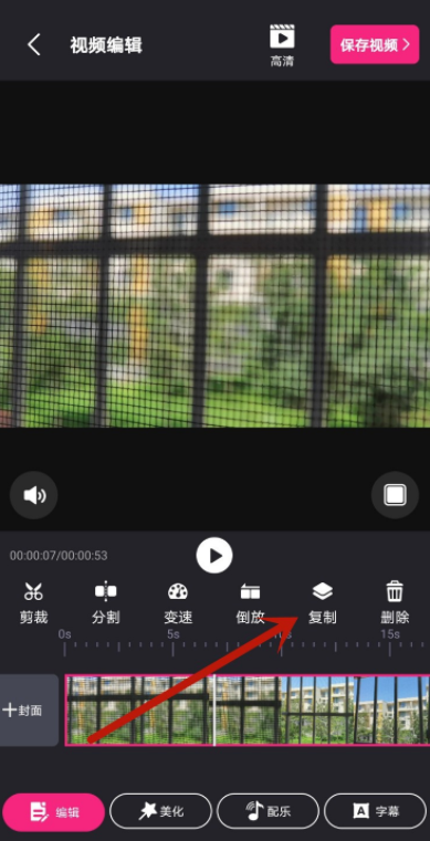 短视频后期剪辑环节,有时候需要多次使用一个视频片段,为了方便,我们可以复制片段,从而增加视频片段留待使用。那么问题来了,有什么方法可以复制视频片段?应该选择哪个软件呢?本文介绍了使用爱剪辑复制视频片段的方法,大家可以学习参考。 爱剪辑如何复制视频片段? 在手机中打开爱剪辑APP,进入界面,点击【开始剪辑】选项,  进入图库,点击【视频】,选择一个短视频素材,进入下一步,  视频添加成功,进入视频编辑窗口,如图,将时间轴拖放至需要复制的视频片段上面,可以先进行分割,然后复制片段,  现在点击【复制】按钮,即可成功复制视频片段,  视频片段复制之后,就会在前面增加一个视频,最后点击【保存视频】即可。  了解更多精彩教程资讯,关注wmzhe.com。 -