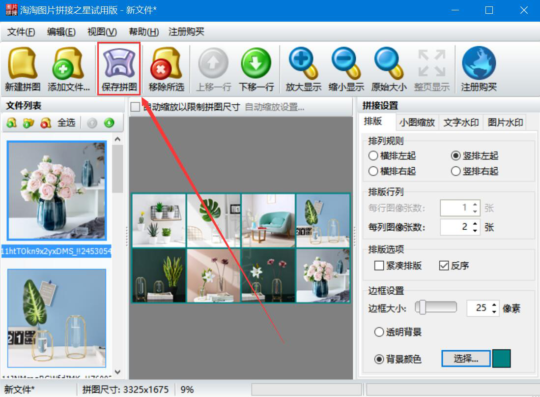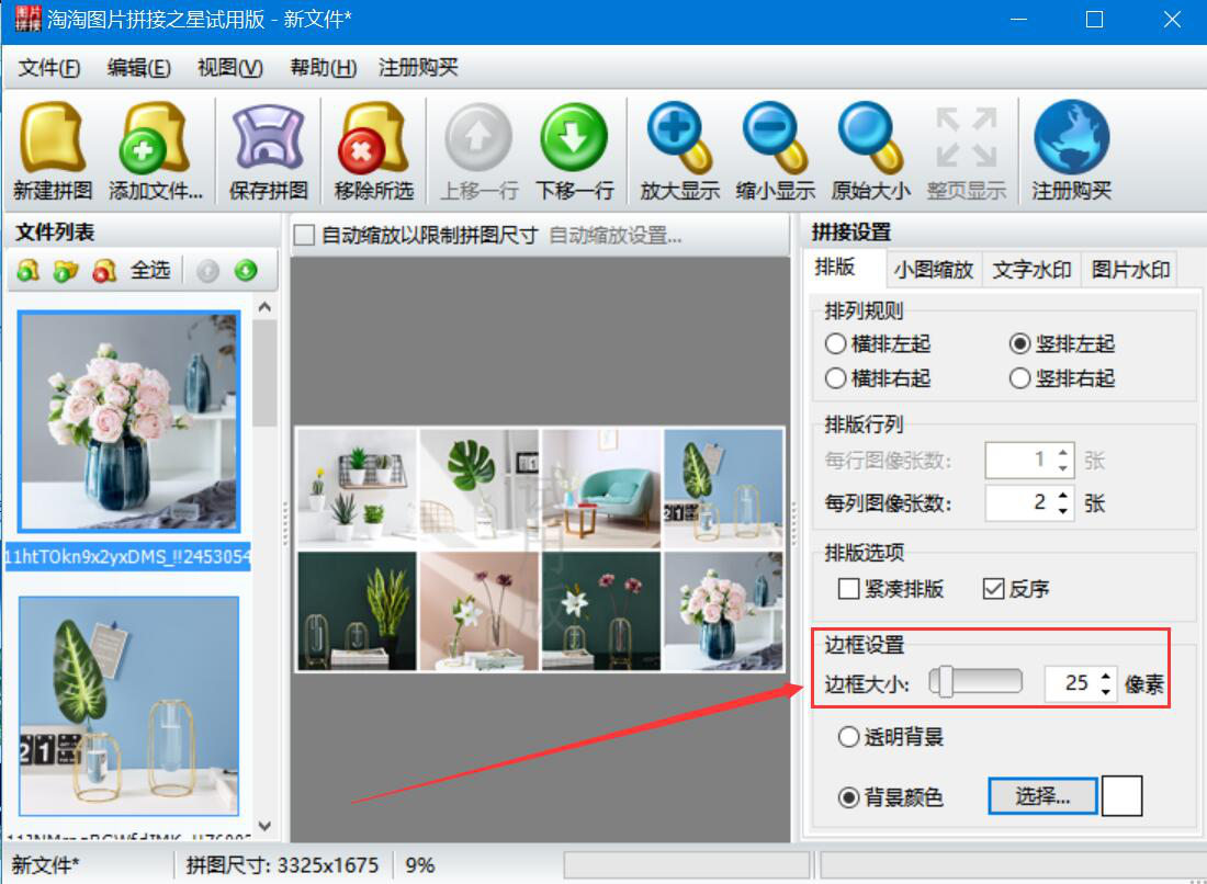 在设计页面的时候,我们经常要将多张图片拼接到一起。可是,如果图片比较多,而且尺寸又不一的时候,用PS来拼接的话,就会比较浪费时间。我们可以用淘淘图片拼接之星拼接图片,提高图片处理效率。考虑到很多人不懂如何操作,下面就为大家分享淘淘图片拼接之星拼接图片的教程。  淘淘图片拼接之星如何拼接图片? 1、首先,我们打开淘淘图片拼接之星,点击界面左上方的“新建拼图”按钮新建拼图文件。  2、然后,我们点击淘淘图片拼接之星界面左上方的“添加文件”按钮,准备添加要拼接的图片。  3、在淘淘图片拼接之星弹出的窗口中,我们选择需要拼接的图片,并点击“打开”按钮。  4、接下来,我们在淘淘图片拼接之星操作界面右侧,根据自己的需要设置图片拼接时的排列规则、每行/每列图像张数和排版时是紧凑还是反序。  5、此外,我们还可以调整图片拼接时的边框大小,在调整时,可以在淘淘图片拼接之星的界面中同步看到效果。  6、如果图片拼接的背景颜色要更改,就点击界面右下方的“选择”按钮,并在淘淘图片拼接之星弹出来的颜色窗口中,点击应用自己喜欢的颜色,再点击“确定”按钮。  7、当图片拼接的效果让自己满意的时候,我们就点击淘淘图片拼接之星界面功能栏中的“保存拼图”按钮。  8、最后,我们在弹出的另存为窗14. 妈妈是最漂亮的,爸爸是最帅的,我是最可爱的,所以我要抓住时间,改造世界,让生活变得更加美好!口中,设置图片拼接后的保存路径,并对其命名,再点击“保存”按钮,淘淘图片拼接之星界面便会将拼接好的图片保存起来。  想要拼接多张图片为一张大图,我们不用事先将图片的尺寸一个个调整,直接用淘淘图片拼接之星拼接图片。既免去了调整图片尺寸的麻烦,又有多种拼接方式可以选择,智能拼图,节省图片处理的时间。 -