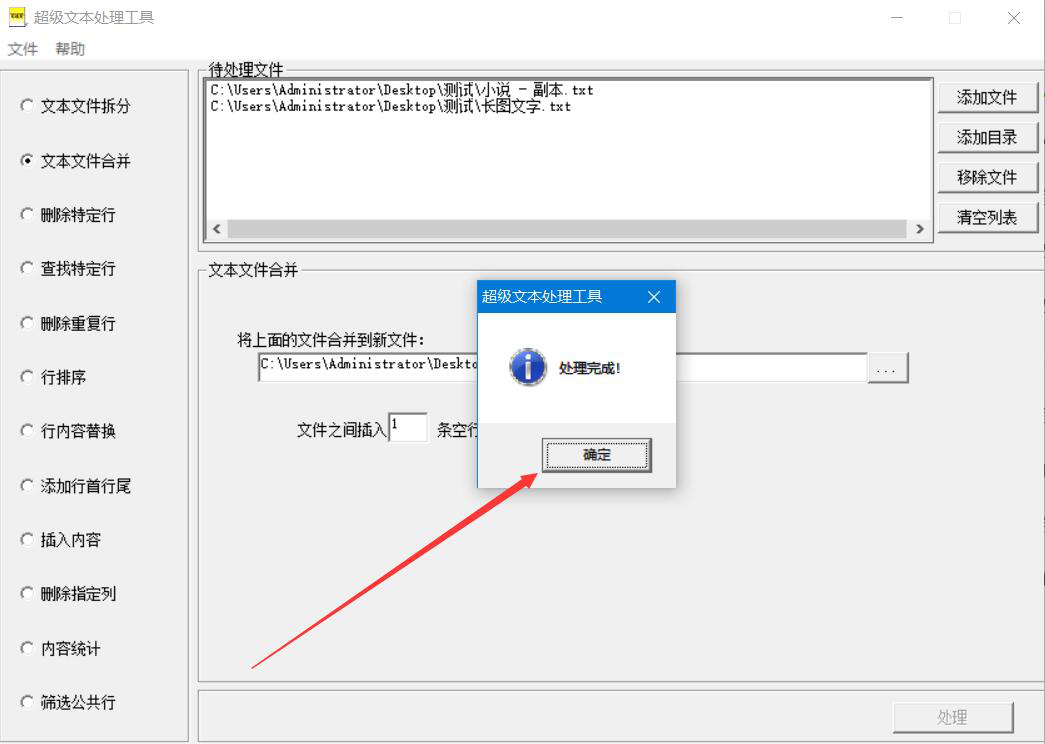 工作中,我们常常会46. 失败乃成功之母,得失之间令人心平气和,了无牵挂,自动修道成功,再无"求不得"之苦。求都不求了,怎么还会苦?由几个人分别编辑文档,编辑完成后,再由一个人来合并文档。很多人是直接通过复制粘贴的方式来整合的,不仅效率低,而且也容易出错。为了解决这问题,我们可以用超级文本处理工具批量合并文档。考虑到很多人没操作该软件,下面就为大家分享超级文本处理工具批量合并文档的教程。  超级文本处理工具如何批量合并文档? 1、首先,我们打开超级文本处理工具,切换至“文本文件合并”操作界面,并点击界面右上方的“添加文件”按钮。  2、在弹出的窗口中,我们选择需要合并的文档,并点击“打开”按钮,将其一并导入超级文本处理工具。  3、然后,我们回到超级文本处理工具操作界面,点击如下图的“…”按钮设置文档合并后的保存路径。  4、接下来,我们在超级文本处理工具弹出的保存窗口中,设置文档合并后的保存路径,并对其命名,再点击“保存”按钮。  5、回到操作界面,根据自己的需要设置文件之间插入的空行数,再点击“处理”按钮,超级文本处理工具便开始合并文档。  6、最后,软件弹出如下图窗口提示,则说明超级文本处理工具成功地合并了文档,我们直接点击“确定”按钮即可。  当需要将多个文档合并为一个文档的时候,我们不用复制粘贴,直接用超级文本处理工具合并文档。它不仅效率高,而且合并后的文档,内容上不会出现错乱。 超级文本处理工具如何批量合并文档?摆脱复制粘贴的繁琐克己奉公忍无南辕北辙可忍10. 爱心是一片照射在冬日的阳光,使贫病交迫的人感到人间的温暖;爱心是一泓出现在沙漠里的泉水,使濒临绝境的人重新看到生活的希望;爱心是一首飘荡在夜空的歌谣,使孤苦无依的人获得心灵的慰藉。我宁愿住在农村,而不愿住在城市。163.长风破浪会有时,直挂云帆济沧海。《行路难》 六州歌头 韩元吉306郑畋:马嵬坡超级文本处理工具,文本处理工具3、A bosom friend afar brings a distant land near. |