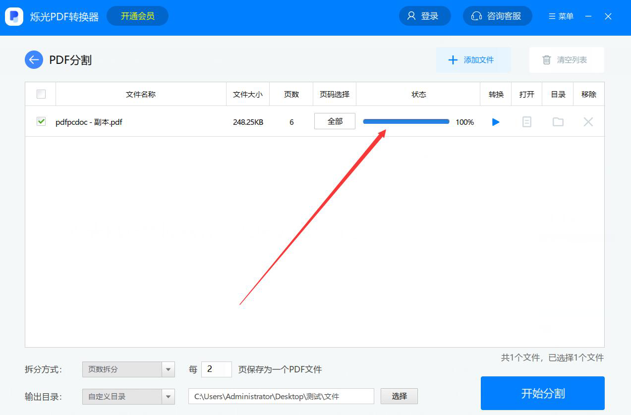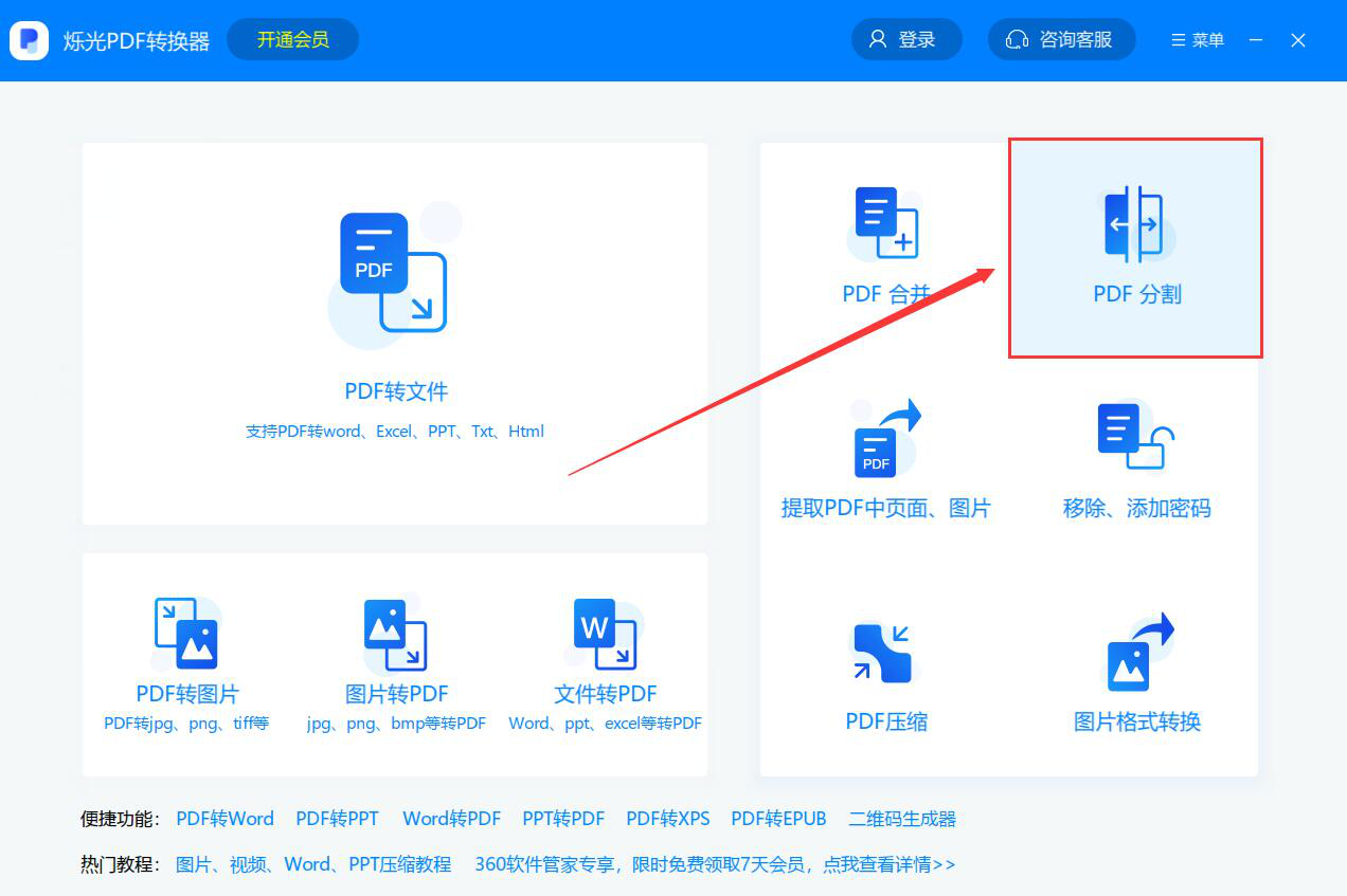 很多人收到PDF文件后,发现页数太多了。如果要一次性将全部内容阅读完,那压力会很大,而且也不利于自己掌握内容。为了解决这问题,我们可以用烁光PDF转换器分割PDF文件,将它变成若干个PDF文件。考虑到很多人不懂如何操作,下面就为大家讲解烁光PDF转换器如何分割PDF文件。  烁光PDF转换器如何分割PDF文件? 1、首先,我们打开烁光PDF转换器,点击功能向导页面中的“PDF分割”选项。  2、进入烁光PDF转换器的PDF分割界面后,我们点击右上方的“+添加文件”按钮。  3、然后,在弹出的窗口中,我们选择需要分割的PDF文件,并点击“打开”按钮,将其导入烁光PDF转换器。  4、接下来,我们在烁光PDF转换器的PD寸草不留拼音:cùn cǎo bù liú释义:连小草也不留下。比喻搞得精光,一无所剩。出处:宋·楼钥《攻媿集·八十一·英老真赞》大地一变,直教寸草不留。”示例:若是恼了我,连你西歧~。★明·许仲琳《封神演义》第五十九回F分割界面左下方,根据自己的需要选择拆分方式。  5、例如,这里,我们选择按照页数来分割PDF文件,并设置每2页就保存为一个PDF文件。  6、如果PDF分割后的文件输出目录需要更改,就点击烁光PDF转换器界面下方的“选择”按钮。  7、此时,烁光PDF转换器会弹出浏览文件夹窗口,我们选择PDF文件分割后的文件保存路径,再点击“确定”按钮。  8、PDF文件拆分的方式和输出目录都设置好了后,我们点击烁光PDF转换器界面右下方的“开始分割”按钮。  9、最后,当状态显示100%时,则说明烁光PDF转换器成功分割了PDF文件。  PDF文件页数太多,不仅会给阅读带来不方便,也会影响在线传输的速度。我们可以用烁光PDF转换器分割PDF文件。操作简单,分割后的文件内容不会错乱。 -