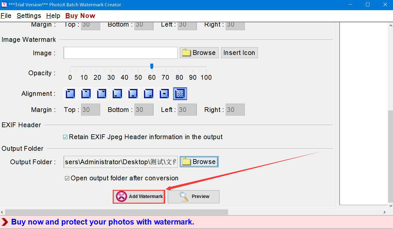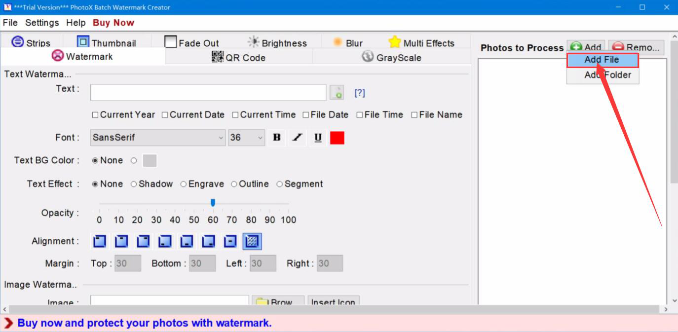 很多人做好自己的图片作品后,想将它上传到相关的图片网站,向更多的人展示自己的作品。可是,又担心自己的作品被别人随意盗用。那么,为了解决这问题,我们可以用PhotoX给图片添加文字水印,保护自己的图片。考虑到很多人没操作过该软件,下面就为大家分享PhotoX给图片添加文字水印的教程。  PhotoX如何给图片添加文字水印? 1、首先,我们打开PhotoX软件,点击界面右上方的“Add”功能中的“Add File”选项。  2、在弹出的窗口中,我们选择需要添加水印的图片,并点击“Add”按钮,将其导入PhotoX软件。  3、然后,我们回到PhotoX软件操作界面,在“Text Watermark”文字水印一栏,文本框中输入自己想要为图片添加的文字水印内容。  4、文字水印的文字输完后,我们还可以在PhotoX软件中设置文字水印的字体类型、字体格式、背景颜色、字体效果、透明度等等。  5、接下来,如果为图片添加了文字水印后的文件输出路径需要更改,就点击PhotoX软件中的“Browse”按钮。  6、此时,PhotoX会弹出输出文件夹窗口,我们选择给图片添加了文字水印后的文件保存路径,再点击“Select”按钮。  7、最后,我们点击界面中的“Add Watermark”按钮,PhotoX便开始为图片添加文字水印。  担心图片作品随意26. 失恋后要培养乐观豁达的健康心理。振奋精神,把眼光投向未来,而不死死盯住眼前的爱情挫折上。当然,冷静地分析一下过去失恋的原因,吸取一些教训,有助于心情的开朗。被别人盗用,侵犯自己的作品权,就可以使用PhotoX给图片添加文字水印或者添加图片水印。要注意的是,水印的大小要适当调整,不可过大,以免影响图片的美观度。 -