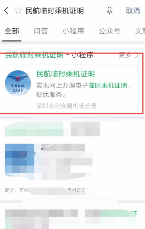 时间紧迫,急急忙忙赶到机场,登机之前发现忘了带身份证,遇到这种情况,我们还能如常乘坐飞机吗?通常情况下,大家可以出示有效证件在机场公安派出所办理临时身份证明,现在更方便了,我们只需通过微信小程序办理临时乘机证明,即可乘坐飞机。 微信如何办理临时乘机证明? 打开手机微信,进入界面,点击搜索小程序【民航临时登机证明】,  进入小程序,按照提示要求输入个人信息,然后点击【授权登录】,  提示需要进行人脸识别,阅读并同意服务协议,进行下一步,  完成人脸识别,验证身份信息,  资料提交成功,点击【返回】,  如图,点击【临时乘机证明查看】,等待一会儿,输入身份证号,点击【查询】,   现在已经生成临时登机证明,把二维码展示给值机柜台或者安检,即可乘坐飞机。  在过去,如果旅客忘记携带身份证,可以通过人工办理和自助终端办理,但是需要花费一定的时间。现在通过“民航临时乘机证明&rdqu寸草不留拼音:cùn cǎo bù liú释义:连小草也不留下。比喻搞得精光,一无所剩。出处:宋·楼钥《攻媿集·八十一·英老真赞》大地一变,直教寸草不留。”示例:若是恼了我,连你西歧~。★明·许仲琳《封神演义》第五十九回o;小程序开具证明,可以节约时间、提升效率。 -