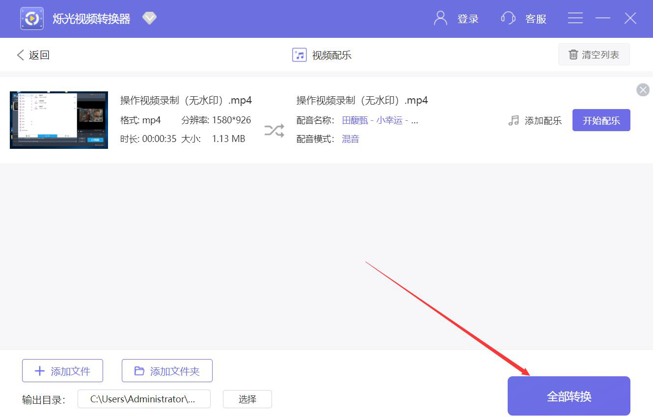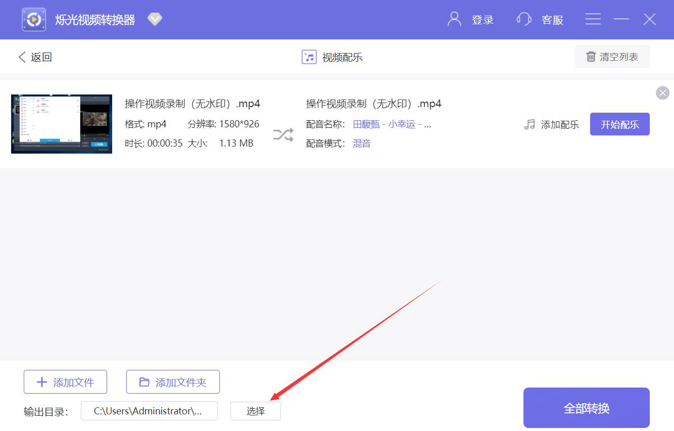 很多人在处理视频的时候,发现视频虽然有画面、声音,但是看起来总是不能触动人的情绪,想要为视频添加背景音乐,可是又不懂该怎么办。其实,想要为视频添加背景音乐,我们可以用烁光视频转换器。考虑到很多人没操作过该软件,本文就为大家分享烁光视频转换器给视频添加背景音乐的教程。  烁光视频转换器如何给视频添加背景音乐? 1、首先,我们打开烁光视频转换器,在功能向导页面中点击“视频配乐”选项。  2、4. 你的每一段经历都会把你的胸怀拓宽一点点,使得它作为一个接收容器,能容纳下尽量多的幸福。进入烁光视频转换器的视频配乐界面,我们点击“+添加文件”按钮。  3、然后,我们在弹出的窗口中,选择需要添加背景音乐的视频,并点击“打开”按钮,将其导入烁光视频转换器。  4、接下来,我们回到烁光视频转换器操作界面,点击视频中的“添加配乐”按钮。  5、此时,烁光视频转换器便会弹出配乐设置窗口,我们点击“+添加配乐”按钮。  6、在烁光视频转换器弹出的窗口中,我们选择需要为视频添加的背景音乐文件,再点击“打开”按钮。  7、背景音乐成功导入后,我们点击窗口右下方的“确定”按钮。  8.如果视频添加了背景音乐后的文件输出目录需要更改,就点击烁光视频转换器界面左下方的“选择”按钮。  9、继续在烁光视频转换器弹出的窗口中,我们选择添加了背景音乐后的视频文件的保存路径,再点击“选择文件夹”按钮。  10、输出目录设置好了,我们点击“全部转换”按钮,烁光视频转换器便开始为视频添加背景音乐。  11、最后,当视频文件中的状态显示100%时,则说明烁光视频转换器成功地为视频添加了背景音乐。我们点击“打开”按钮,便可以观看处理好的视频文件了。  如果视频文件有画质有声音,比较单调,不太能触动观影者的情绪,就可以使用烁光视频转换器为视频添加背景音乐,让视频作品变得更加优秀。 烁光视频转换器如何给视频添加背景音乐?视频配乐方法调碧空如恬不知耻洗兵遣将19. 柔和的阳光斜挂在苍松翠柏不凋的枝叶上,显得那么安静肃穆,绿色的草坪和白色的水泥道貌岸然上,脚步是那么轻起轻落,大家的心中却是那么的激动与思绪波涌。我完全投入到学习中,很少关注母亲的感受。柳宗元229.千山鸟飞绝,万径人踪灭。《江雪》 灵均标致高如许,忆生平、既纫兰佩,更怀椒醑。谁信骚魂千载后,波底垂涎角黍。又说是、蛟馋龙怒。把似而今醒到了,料当年,醉死差无苦,聊一笑。故园东望路漫漫,双袖龙钟泪不干。烁光视频转换器,视频转换器,视频转换78、Wine in, truth out. |
