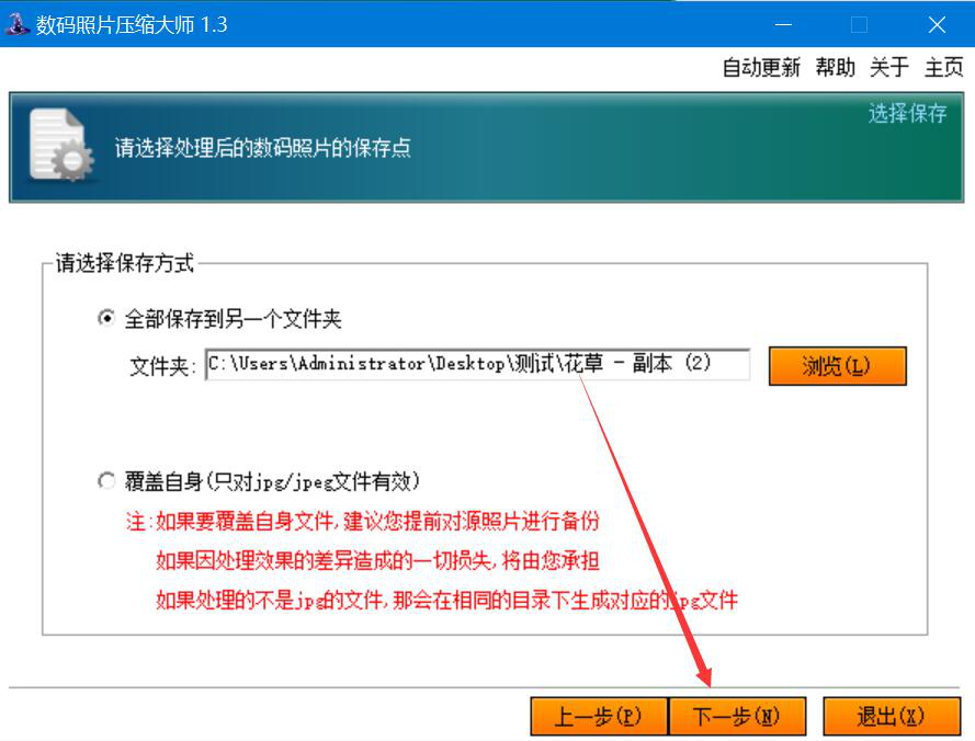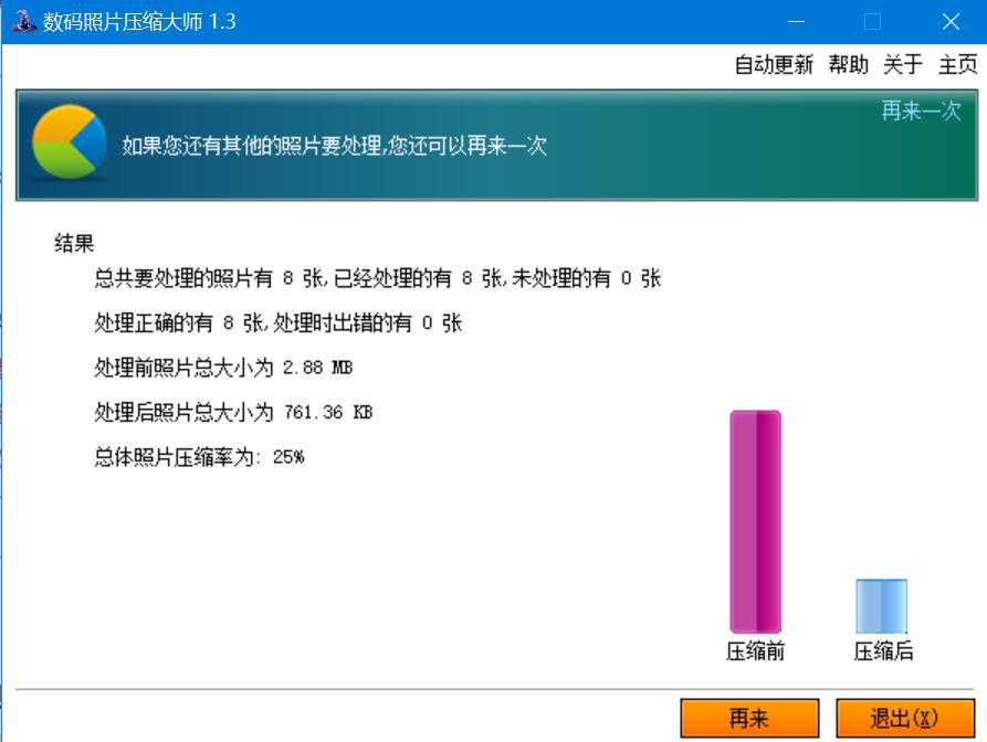 很多人用相机拍完图片后,打开图片属性才发现图片太大了,根本上传不了相关的网站,而且也占用了过多的磁盘空间。为了解决这问题,我们可以用数码照片压缩大师批量压缩图片,将图片体积变小。考虑到很多人不懂如何操作,下面就为大家分享数码照片压缩大师批量压缩图片的教程。  数码照片压缩大师如何批量压缩图片? 1、首先,我们打开数码照片压缩大师,点击界面右下方的“添加文件夹”按钮。  2、在数码照片压缩大师弹出的浏览文件夹窗口中,我们选择需要批量压缩的图片文件夹,并点击“确定”按钮。  3、然后,我们回到数码照片压缩大师操作界面,点击“下一步”按钮。  4、进入图片压缩后的保存点设置窗口,如果输出路径要更改,我们就点击界面中的“浏览”按钮。  5、接下来,在数码照片压缩大师弹出的浏览文件夹窗口中,我们选择图片批量压缩后的保存路径,再点击“确定”按钮。  6、回到保存点设置窗口,我们点击“下一步”按钮,继续下一步操作。  7、我们根据自己的需要,在压缩质量中左右拉动滑块调19. 我的心曾是一座孤岛,寸草不生,你来之后,花木繁盛。整图片批量压缩的强度,再点击“下一步”按钮。  8、接着,我们点击界面右下方的“开始”按钮,数码照片压缩大师便开始批量压缩图片。  9、最后,界面中显示压缩结果,说明数码照片压缩大师将图片批量压缩好了。我们可以看到图片压缩前后的大小对比和图片压缩率。  为了避免图片占用过多的磁盘空间,方便图片上传,我们可以用数码照片压缩大师批量压缩图片。不过,要注意的是,压缩质量越低,图片就会越小,质量也会越差。 -