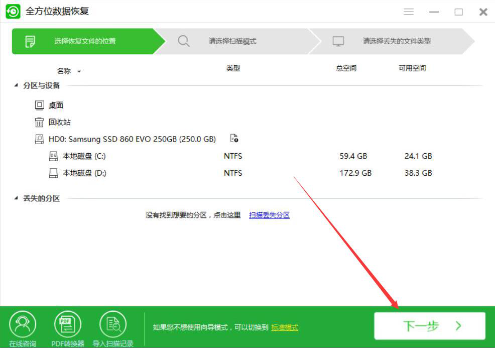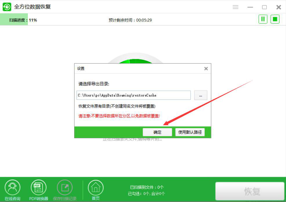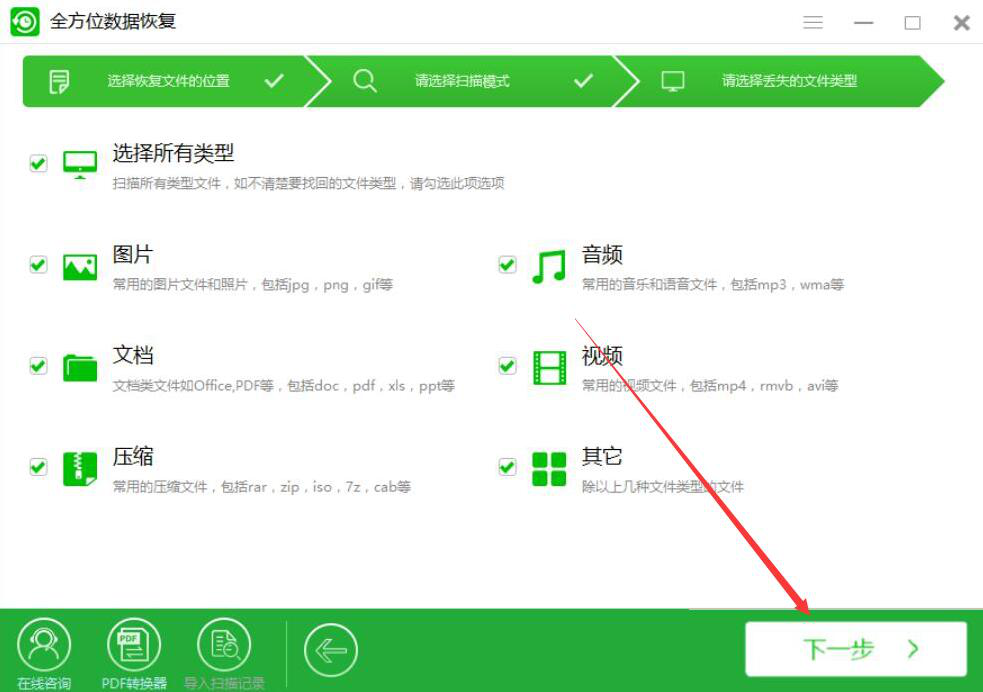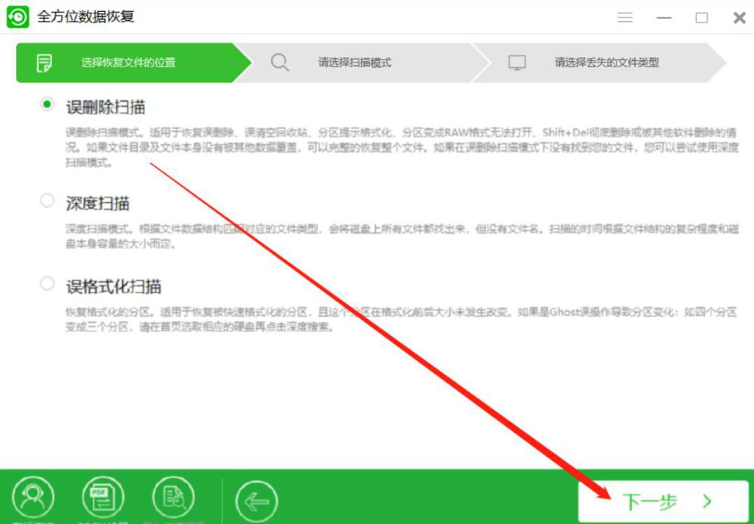 很多人在整理磁盘文件的时候,没有仔细看清楚,误删了文件,导致文件无法通过常规的办法来恢复,而自己又着急找回该文件,该怎么办?我们可以使用全方位数据恢复软件扫描并恢复磁盘文件,将文件恢复原样。考虑到很多人没操作过该软件,下面就为大家讲解全方位数据恢复软件如何扫描恢复磁盘文件。  全方位数据恢复软件如何恢复磁盘文件? 1、首先,我们打开全方位数据恢复软件,先选择自己想要恢复的文件所在的磁盘,再点击界面右下方的“下一步”按钮。  2、然后,我们在全方位数据恢复软件中,根据自己的实际需要选择磁盘扫描的模式,选好后,点击“下一步”按钮。  3、接下来,我们在全方位数据恢复软件中,勾选自己想要恢复的磁盘文件类型,再点击“下一步”按钮。  4、此时,我们便可以看到全方位数据恢复软件正在扫描可以恢复的磁盘文件,如下图所示。  5、在扫描过程中,我们可以点击全方位数据恢复界面右上方的“≡”按钮,并在弹出的设置窗口中,设置磁盘文件恢复后的导出目录,再点击“确定”按钮。  6、最后,扫描完成了,我们勾选自己想要恢复的磁盘文件,再点击“恢复”按钮,全方位数据恢复软件便会恢复并保存所选的磁盘文件。  当磁盘文件被误删后,又无法从回收站找回的时候,我们就可以使用全方位数据恢复软件便会扫描并恢复磁盘文件,将文件数据找回来。 -
