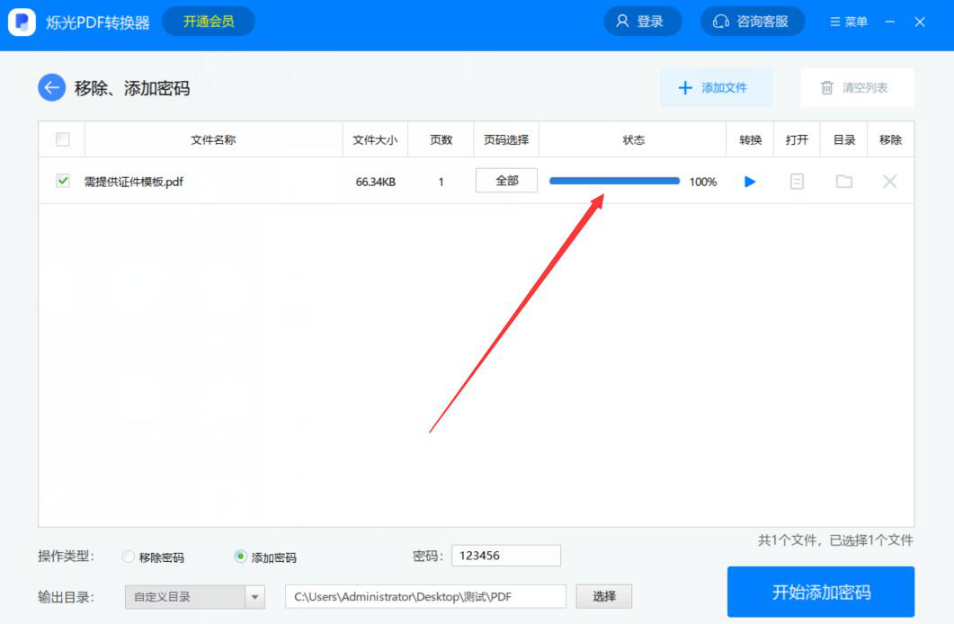 很多人将文档转换为PDF格式文件后,会担心文件随意被别人访问,导致重要数据被泄露,造成不可挽回的损失。为了解决这问题,我们可以使用烁光PDF转换器加密PDF文件,提高文件的安全性。考虑到很多人都没操作过该软件,下面就为大家分享烁光PDF转换器加密PDF文件的教程。  烁光PDF转换器如何加密PDF文件? 1、首先,我们打开烁光PDF转换器,在功能向导页面中点击“移除、添加密码”选项。  2、进入烁光PDF转换器移除、添加密码界面,我们点击界面右上方的“+添加文件”按钮。  3、然后,在弹出的窗口中,我们选择需要加密的PDF文件,并点击“打开”按钮,将其导入烁光PDF转换器。  4、接下来,我们回到烁光PDF转换器操作界面,点选“添加密码”的操作类型,并在它的旁边输入自己想要加密PDF文件的密码,如下图所示。  5、如果PDF文件加密后的输出目录需要更改,就点击烁光PDF转换器界面下方的“选择”按钮。  6.此时,烁光PDF转换器会弹出浏览文件夹窗口,我们选择P2. 有人说,觉得失恋痛苦的女人,是因为在感情中付出太多,回不了头。也有人说,失恋给人的感觉就像嘴里长了溃疡,越痛越要去舔,越舔却又越痛。DF文件加密后的保存路径,再点击“确定”按钮。  7、接着,回到操作界面,我们点击界面右下方的“开始添加密码”按钮,烁光PDF转换器便开始为PDF文件加密。  8、最后,状态显示100%,则说明烁光PDF转换器成功地加密了PDF文件。  担心PDF文件数据泄露,我们可以使用烁光PDF转换器加密PDF文件,这样一来,别人就不能随便访问该PDF文件了。 -
