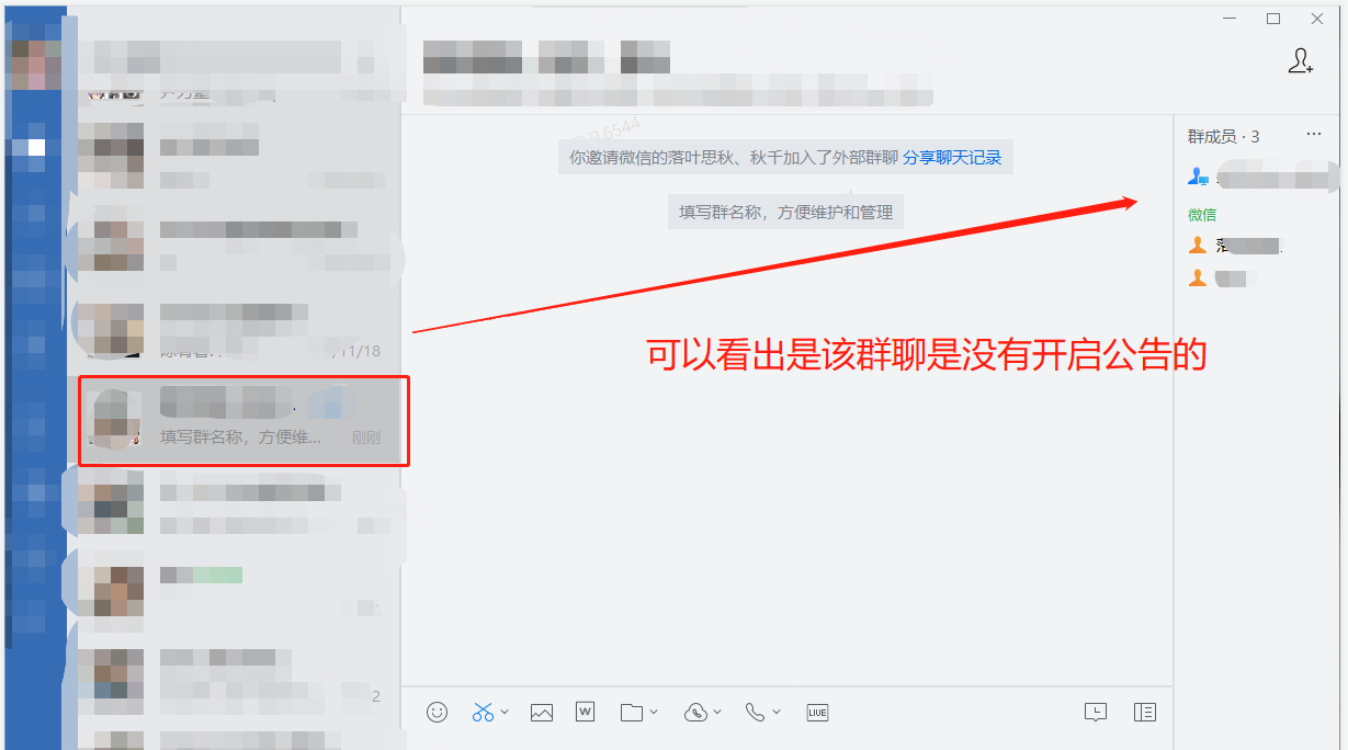 企业微信是很多公司正在使用的一款办公通讯软件,有时候需要在群组发布工作事项,为了让所有群成员可以实时信息,你可以选择发布群公告。企业微信群聊如何发布群公告?下面小篇就来进行操作演示,大家可以了解查看。 企业微信群聊如何发布群公告? 在电脑中打开企业微信,登录账号,进入界面,选择一个群聊,在群聊窗口没有看到任何公告,  在左侧菜单栏点击群聊选项,单击鼠标右键,选择【写群公告】,  弹出群公告窗口,如图,填写相关内容,点击【发布】按钮,  出现弹窗,确定是否发布,点击确定即可,  返回群聊窗口,大家可以看到刚刚编辑的群公告,而且在右侧也可以看到群公告内容。  注意,我们每次修改发布群公告之后,相关内容就会同步发到群聊窗口,了解更多精彩教程资讯,关注wmzhe.com。 -