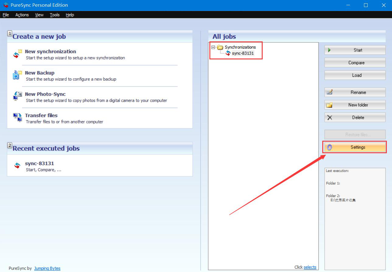很多人在使用电脑的时候,难免会因为操作失误,将重要的电脑文件删掉了,又无法从回收站恢复,影响了工作。为了解决这一问题,我们可以使用PureSync备份电脑文件。这样一来,就算源文件丢失了,还可以通过备份来恢复。考虑到很多人不懂操作,下面就为大家讲解怎么用PureSync备份电脑文件。  如何使用PureSync备份电脑文件? 1、首先,我们打开PureSync软件,点击“New synchronization”新建备份功能选项。  2、然后,进入PureSync的备份操作界面,我们点击左侧“Folder1”窗口中的文件夹打开按钮,在弹出的浏览文件夹中选择需要PureSync备份的电脑文件,并点击“确定”按钮。  3、接下来,我们在PureSync的备份操作界面,点击右边窗口中的目标文件夹图标按钮,并在弹出的浏览文件夹窗口中,选择电脑文件备份后的储存路径,再点击“确定”按钮。  4、要备份的文件的保存路径设置好了后,我们点击PureSync备份界面中的“Next”按钮。  5、此时,我们便可以在PureSync主界面中看到刚才创建的电脑文件备份任务,点击“Settings”按钮,继续下一步操作。  6、进入PureSync的电脑文件备份设置窗口,我们可以根据自己的需要进行设置,设置完成后,点击“26. 爱人的离开有的时候其实是正确的选择,与其苟且着互相伤害,不如用残忍的伤害让你放手去寻找自己幸福。OK”按钮。  7、最后,我们点击界面右上方的“Start”按钮,PureSync便开始备份电脑文件。  电脑中的文件数据一旦丢失,难以通过常规的办法来恢复,我们可以使用PureSync备份电脑文件。这样一来,就算源文件丢失了,还可以通过备份来恢复。 -