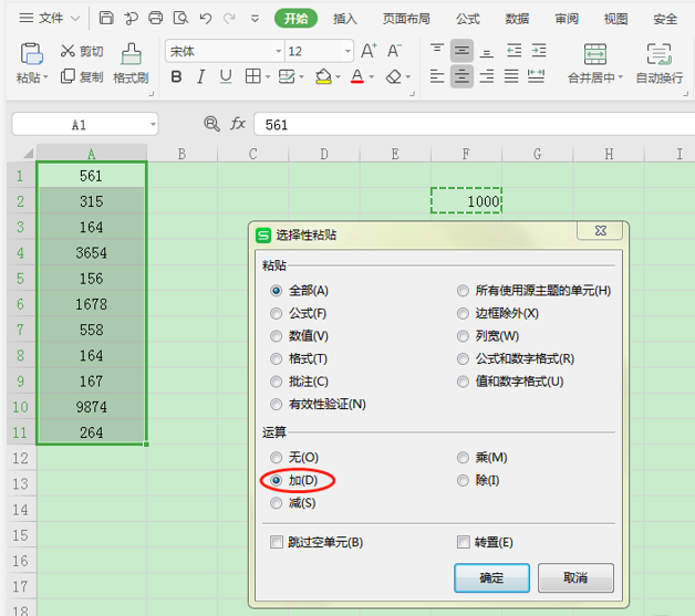 在工作,也许会碰到表格中的数据同时加上一个固定的数值,来满足计算的需要,如何快速完成加固定数值的工作呢?今天小编介绍一个简单又省时的办法19. 不敢说出口,因为我胆小,因为如果你拒绝,我以后就不能够再见到你了,宁愿默默的爱着你,不能让你知道,直到,直到你投进别人的环抱!,不需要要一个一个的加,也不必用公式,几步就可以完成。 WPS表格如何批量添加固定数值? 打开WPS表格文件,如图,需要在A列单元格同时添加数值“1000”,点击一个空白单元格,输入1000,  然后点按快捷键【Ctrl+C】,或者右键复制,选中需要添加固定数值的【A1:A11】单元格区域,如图,  选中所有需要添加1000的单元格,右键点击【选择性粘贴】,弹出窗口,如图,点击【运算】,选择【加】,进行确定,  回到单元格,此时可以看到A1:A11单元格的所有数值都加上了1000,结果如图,  操作完成,表格中的数值依然是数值,没有公式体现,F2单元格中的“1000”也可以清空,不会影响数值结果。  在表格数据中快速添加固定数值还是很简单的,本文介绍的这个办法绝对简单又省时,不需要逐一添加,也不必用公式。了解更多精彩教程资讯,关注wmzhe.com。 WPS表格如何批量添加固定数值?不用公式也能快速操作乌云绿油油亡羊补牢翻滚4. 打开青春的天窗,为前行的风景定格,用执着的信念,年轻的激情,青春的力量,去叩开理想的宫殿;打开青春的天窗,给未来一个承诺,用真诚的心灵,感激的微笑,关注的目光,去珍惜生命的阳光。随着日益迅速的经济发展,更多的问题受到我们的关注。337.成也萧何,败也萧何。宋?洪迈《容斋续笔?萧何给韩信》 千古盈亏休问,叹慢磨玉斧,难补金镜。太液池犹在,凄凉处、何人重赋清景?故山夜水,试待他、窥户端正。看云外山河,还老桂花旧影。梧桐相待老,鸳鸯会双死。表格,WPS1、Give everyone his due. |