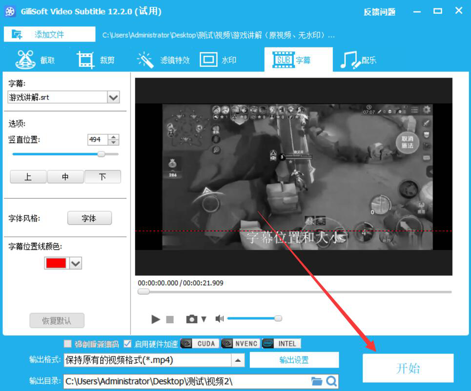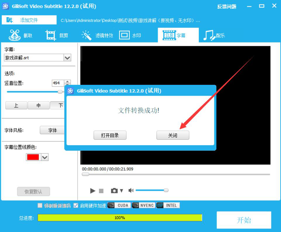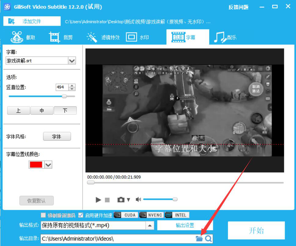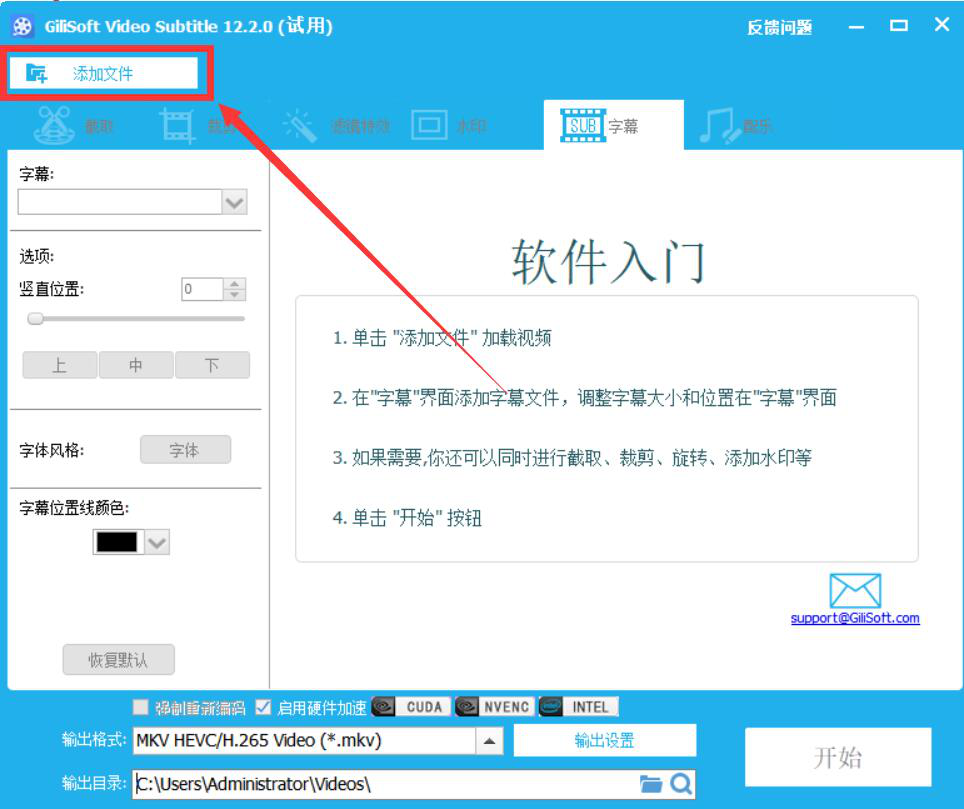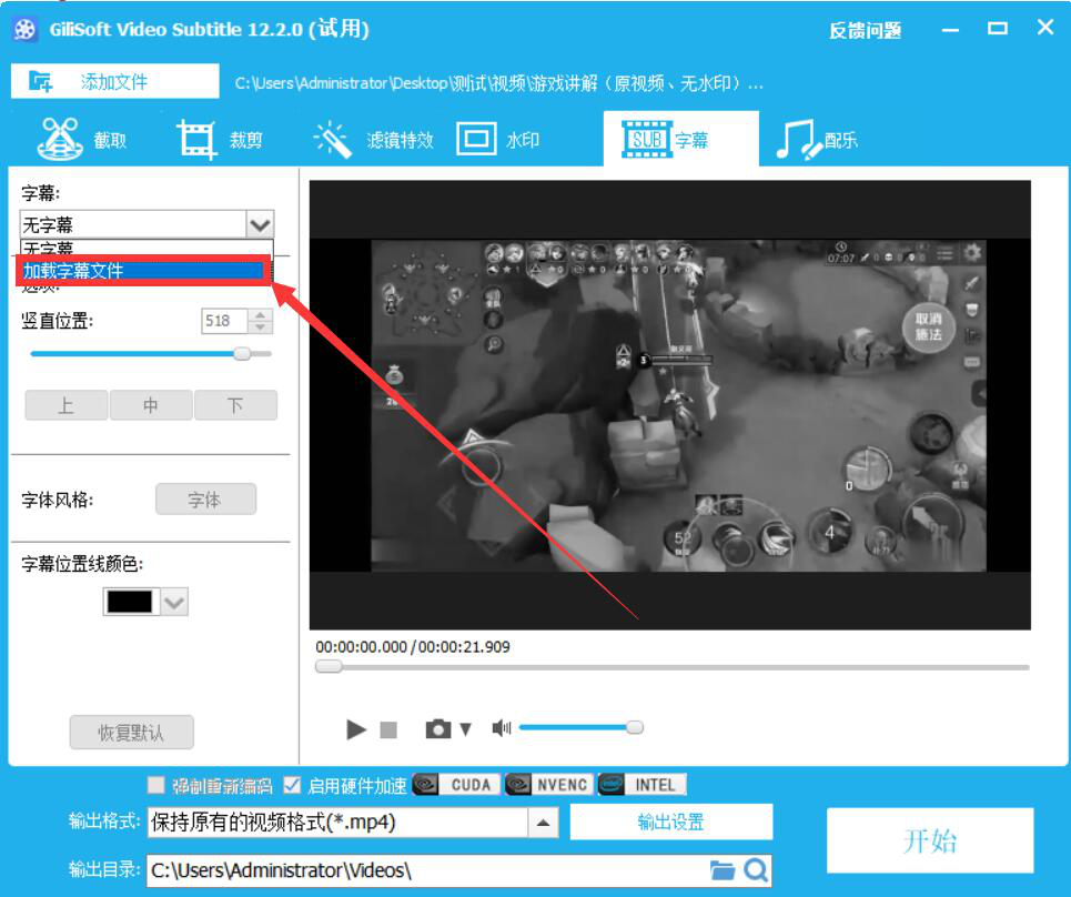 我们知道字幕对于视频来说是一个非常重要的元素,如果没有字幕,那么整个视频看起来就难以理解。为了解决这一问题,我们可以用GiliSoft Video Editor给视频添加字幕。考虑到很多人不懂如何操作,下面就为大家分享GiliSoft Video Editor给视频添加字幕的教程。  GiliSoft Video Editor如何给视频添加字幕? 1、首先,我们打开GiliSoft Video Editor软件,点击向导界面中的“字幕|文字”功能选项。  2、进入GiliSoft Video Edit碧海青天拼音:bì hǎi qīng tiān释义:原是形容嫦娥在广寒宫夜夜看着空阔的碧海青天,心情孤寂凄凉◇比喻女子对爱情的坚贞。出处:唐·李商隐《嫦娥》嫦娥应悔偷灵药,碧海青天夜夜心。”示例:无or的字幕操作界面,我们点击“添加文件”按钮。  3、在弹出的窗口中,我们选择需要添加字幕的视频文件,并点击“打开”按钮,将其导入GiliSoft Video Editor。  4、视频成功导入,我们在GiliSoft Video Editor的字幕界面中,从“字幕”功能项目中点击“加载字幕文件”选项。  5、此时,GiliSoft Video Editor会自动弹出下图窗口,我们选择要为视频添加的字幕文件,并点击“打开”按钮。  6、接下来,我们回到GiliSoft Video Editor操作界面,根据自己的需要设置视频字幕的展示位置、风格、颜色。  7、如果添加了字幕的视频的输出目录需要更改,就点击GiliSoft Video Editor界面下方的文件夹图标按钮,如下图所示。  8、在GiliSoft Video Editor弹出的窗口中,我们选择添加了字幕后的视频保存路径,再点击“确定”按钮。  9、字幕的位置、风格、颜色以及输出目录都设置好了后,我们点击界面右下方的“开始”按钮,GiliSoft Video Editor便开始执行为视频添加字幕命令。  10、最后,弹出如下图的窗口提示,则说明GiliSoft Video Editor成功地为该视频添加了字幕并将其保存到指定的路径中了。  视频没有字幕,会让人理解起来比较困难。我们可以使用GiliSoft Video Editor给视频添加字幕。这样一来,视频就能带给人更愉快的观影体验了。 -