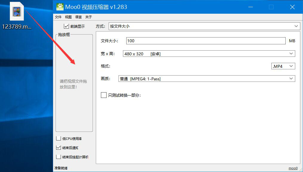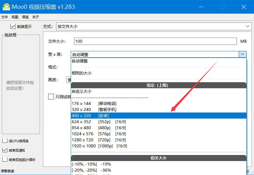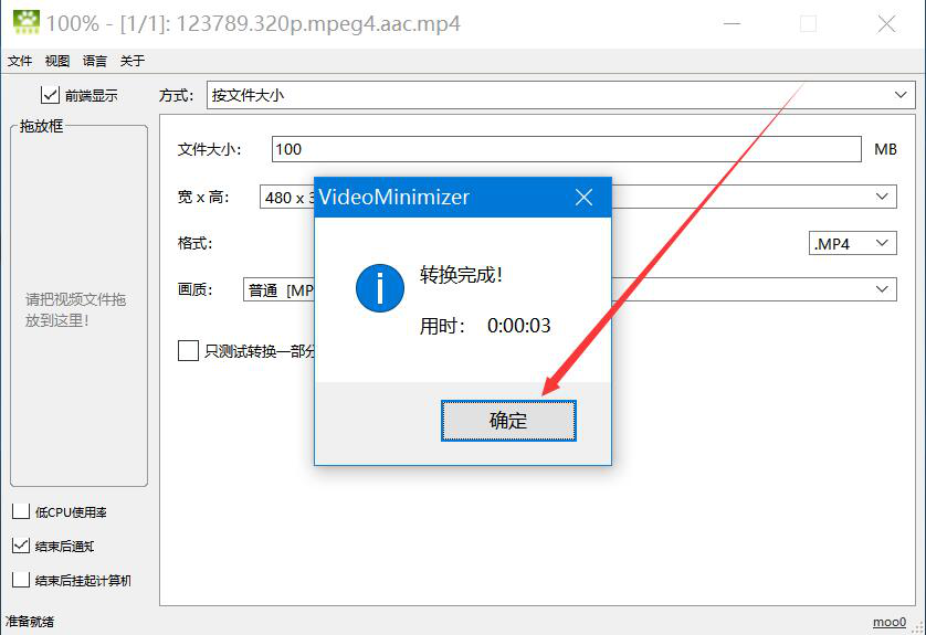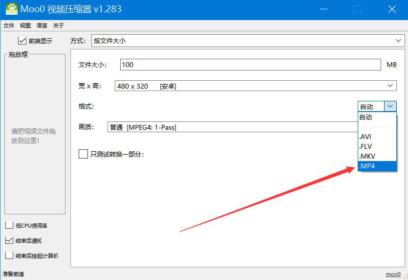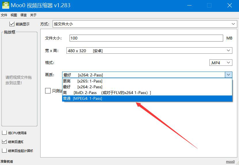 很多人在处理视频文件的时候,才发现视频太大了,不仅占用了过多的磁盘空间,而且也影响了在线发送的速度。为了解决这一问题,我们可以使用Moo0视频压缩器压缩视频文件,将视频变小。考虑到很多人不懂操作,下面就为大家分享Moo0视频压缩器压缩视频文件的教程。  Moo0视频压缩器如何压缩视频文件? 1、首先,我们打开Moo0视频压缩器,先根据自己的需求来选择视频压缩的方式。  2、然后,我们在Moo0视频压缩器中,可以选择它自带的视频大小,也可以自定义视频压缩后的大小。  3、接下来,我们还可以在Moo0视频压缩器界面中,设置视频压缩后的输出格式,方便在自己想要的设备上播放。  4、视频压缩的方式、大小、格式都设置好了后,我们还可以选择视频压缩时的画质,例如,这里,我们选择“普通”画质。因为这种画质的视频体积会比较小。  5、接着,我们将需要压缩的视频文件拖放至界面的拖放框中,Moo0视频压缩器便开始对视频压缩。  6、最后,弹出如下图窗口提示,说明Moo0视频压缩器成功地压缩了视频,我们直接点击“确定”按钮即可。  视频文件过大,会影响在线发送,也会占用更多的磁盘可用空间,我们可以使用Moo0视频压缩器软件压缩视频。要注意的是,在选画质时,画质越好,视频压缩的程度也会越低。 -
