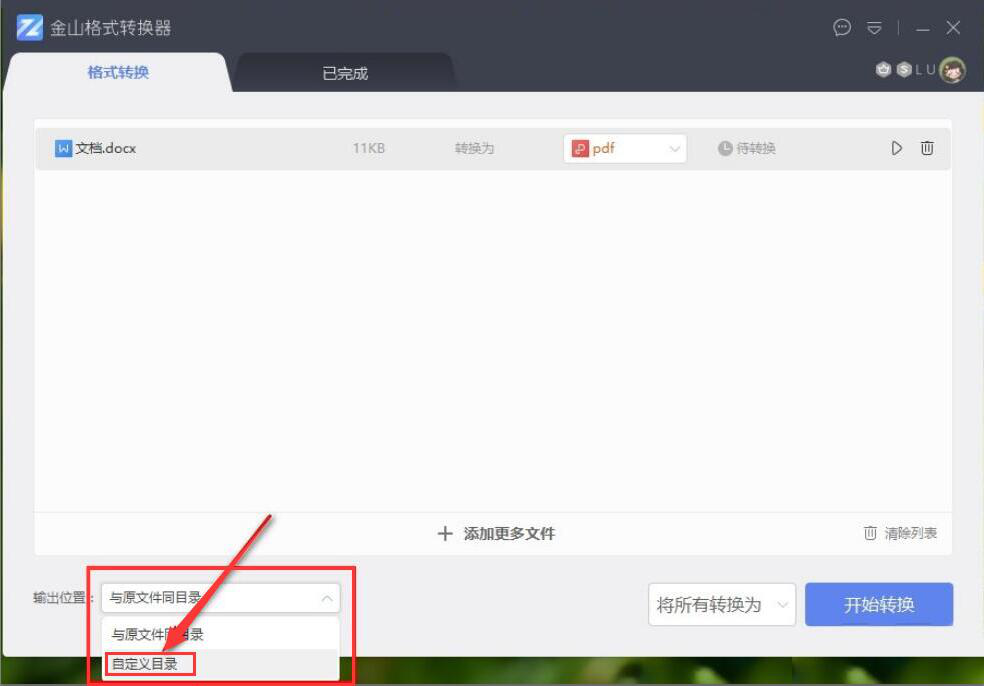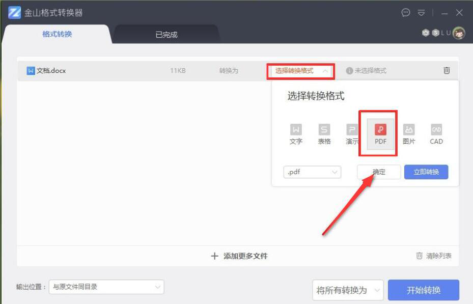 很多人用word编辑完文档后,发给别人,却被别人轻易更改了。有时候,由于word文档格式设置的问题,导致打印时跑版。为了解决这些问题,我们可以用金山格式转换器将Word转成PDF,这样别人就不能随意更改文档了,而且也不容易跑版。考虑到很多人不懂操作,下面就为大家讲解金山格式转换器怎么将Word转成PDF。  金山格式转换器如何将Word转成PDF? 1、首先,我们打开金山格式转换器,点击界面中部的“+”按钮添加文件。  2、在弹出的窗口中,我们选择需要转成PDF的word文档,并点击“打开”按钮,将其导入金山格式转换器。  3、然后,我们回到金山格式转换器操作界面,在转换格式菜单中点击“PDF”格式,并点击“确定”按钮,确定将word转换成PDF。  4、如果word转换成PDF后的文件输出位置需要更改,就点击“自定义目录”选项自由设置输出路径。  5、接下来,我们点击自定义目录下方的“…”按钮,金山格式转换器便会弹出如下窗口,我们选择word转换成PDF后的保存路径,再点击“选择文件夹”按钮。  6、输出位置设置完成后,我们点击界面右下方的“开始转换”按钮,金山格式转换器便开始将word转PDF。  7、最后,金山格式转换器成功地将word转换成PDF格式文件了,我们在“已完成”界面中,点击如下图的文件夹图标按钮即可打开该PDF格式文件了。  不愿意别人轻易更改自己的word文档内21. 分手后你哭了,那是你还没有看透;分手后你笑了,那说明你已经成熟。容,就可以使用金山格式转换器将word转换成PDF格式文件,这样别人可以阅读,但是不能直接编辑。 -